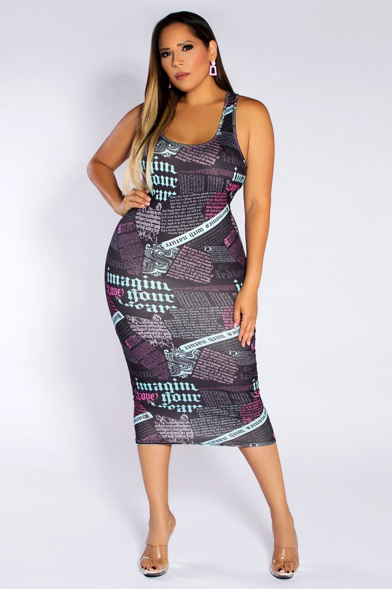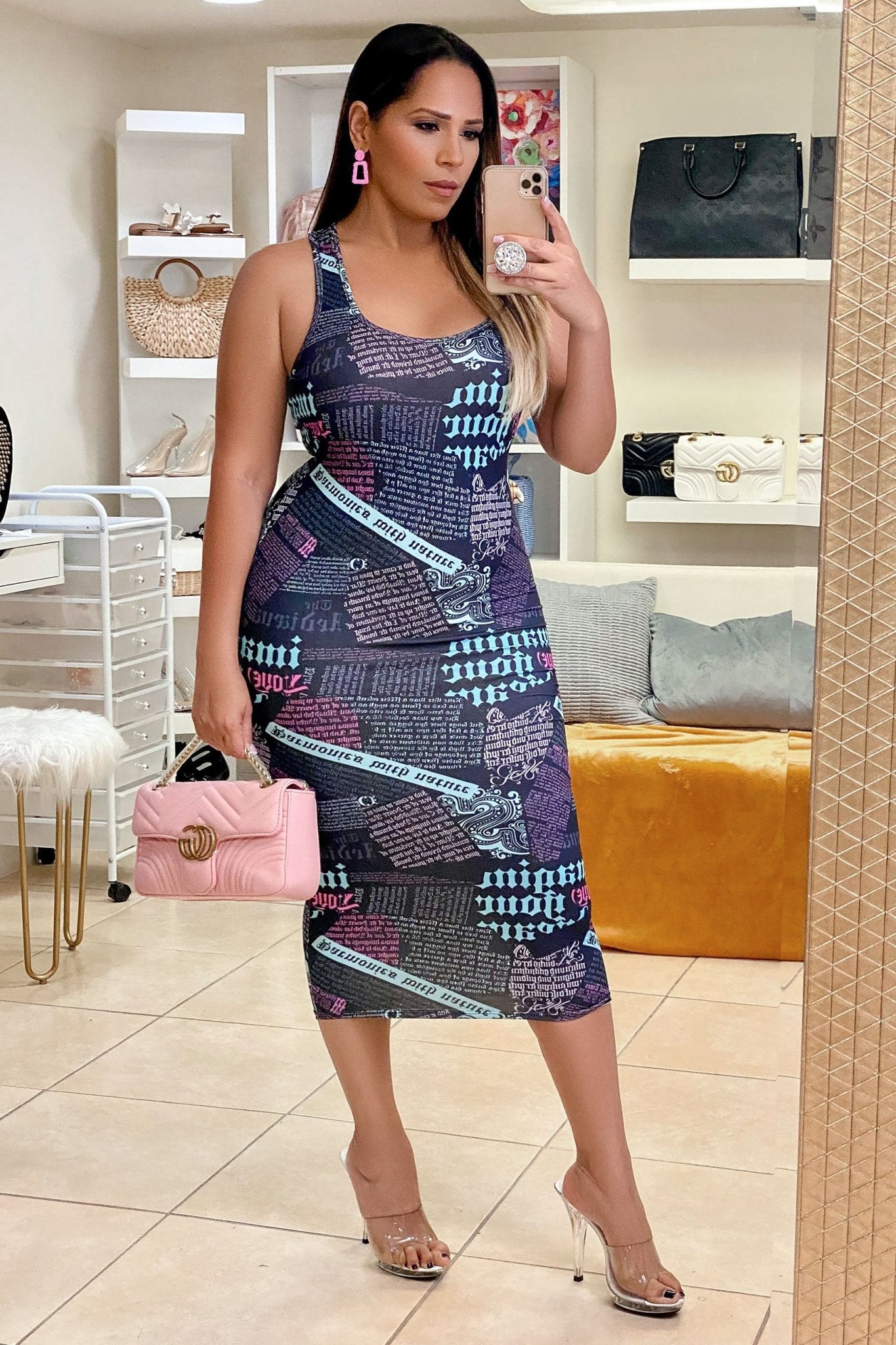 Denisse Sleeveless Neon Sign Printed Satin Mini Dress