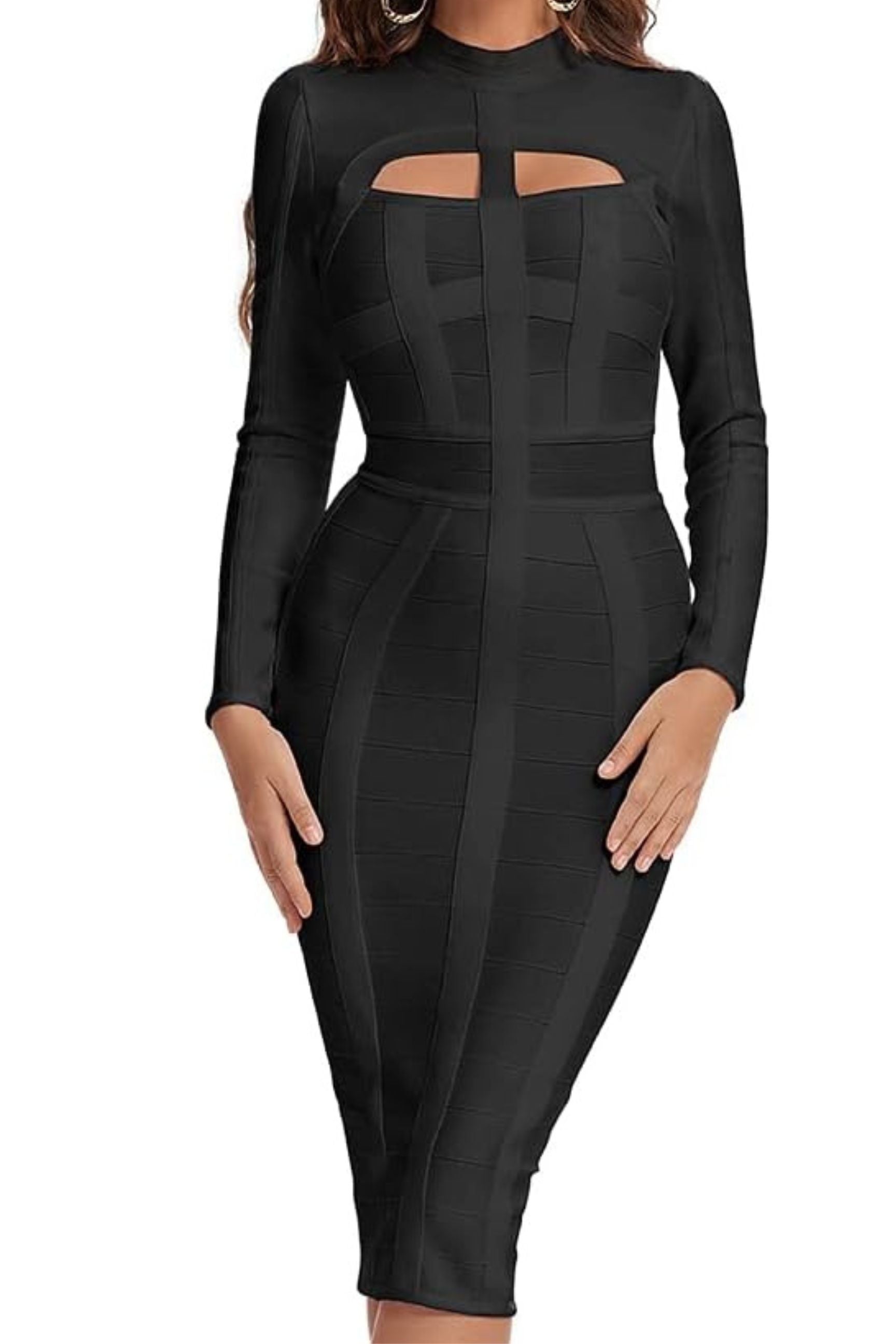 Nyomi Cut-Out Long Sleeves Party Bandage Clubwear Midi Dress - MY SEXY STYLESNyomi Cut-Out Long Sleeves Party Bandage Clubwear Midi Dress - MY SEXY STYLES
