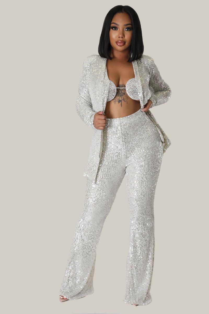 Liliana Babe Sequins Blazer and High Waist Pants Set