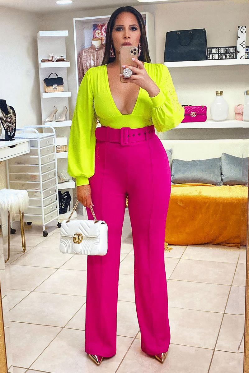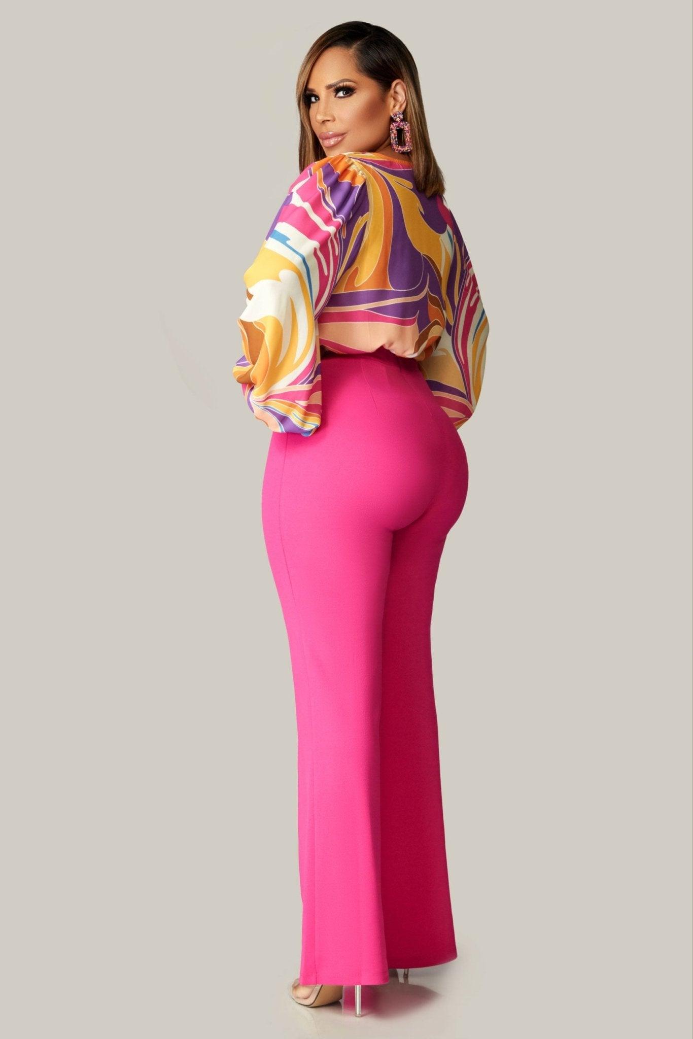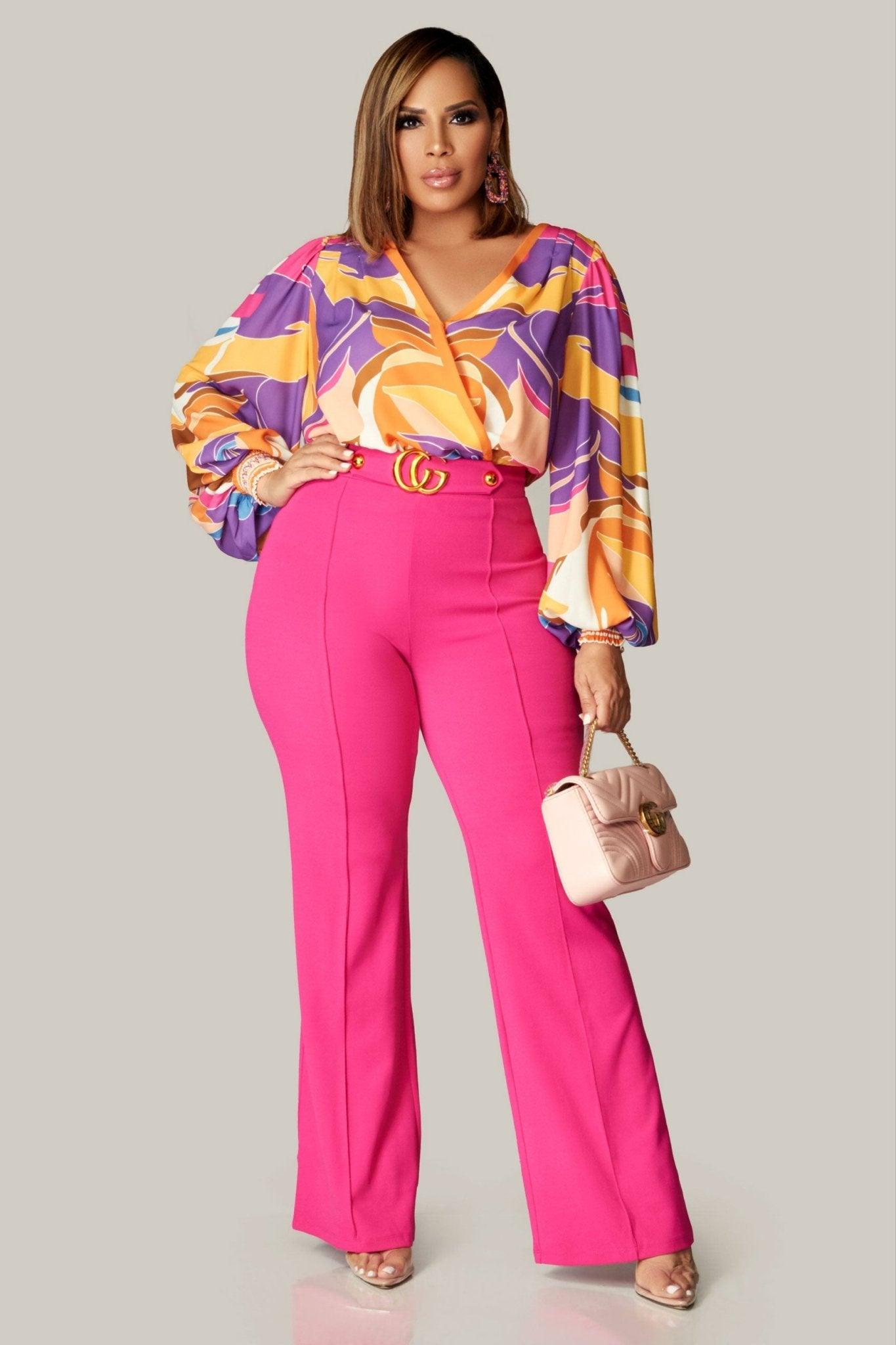 Bodysuit And Wide Leg Pants 2pcs/Set