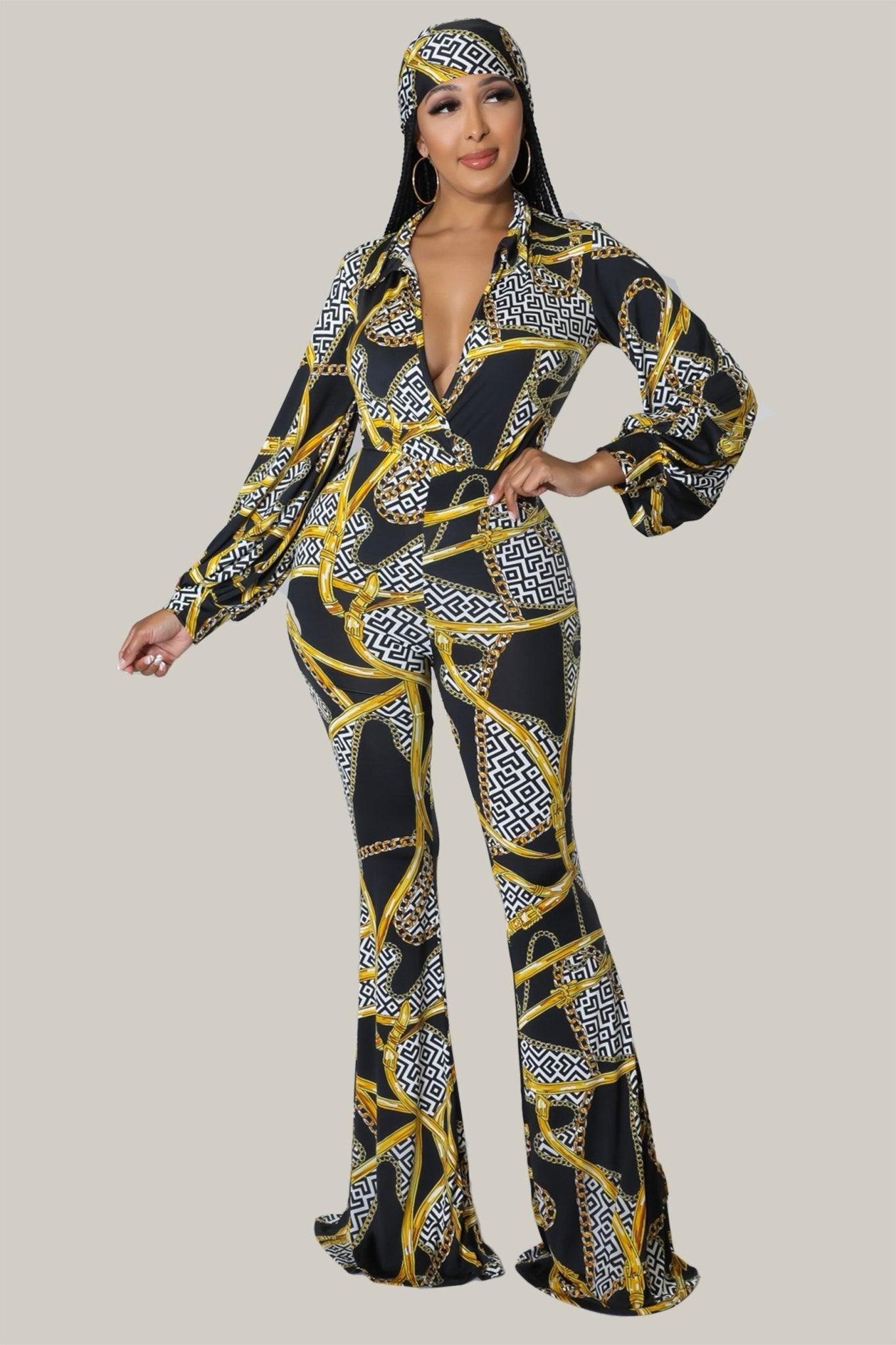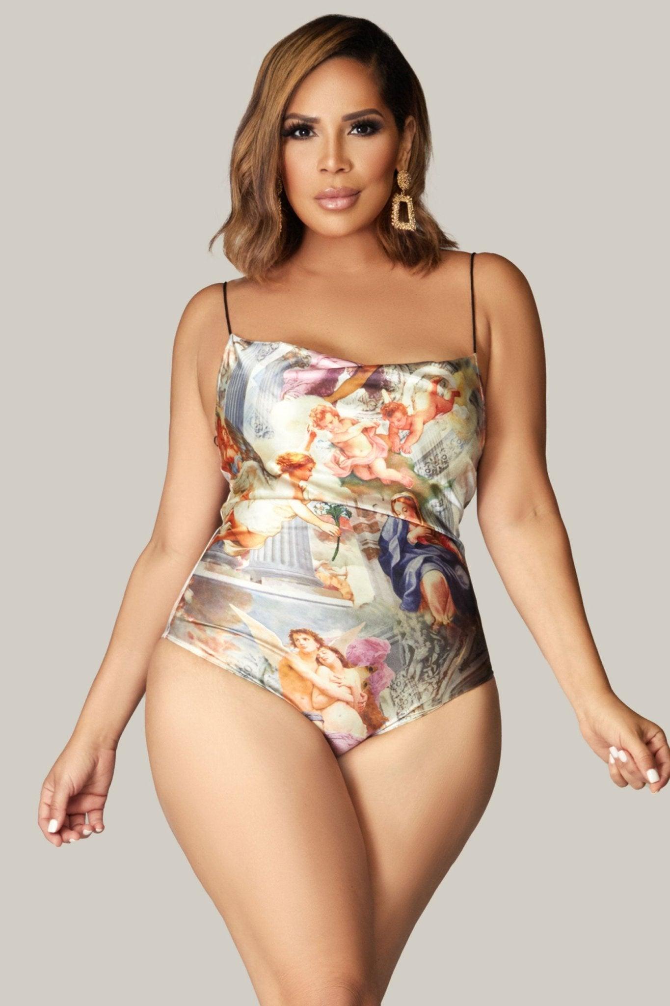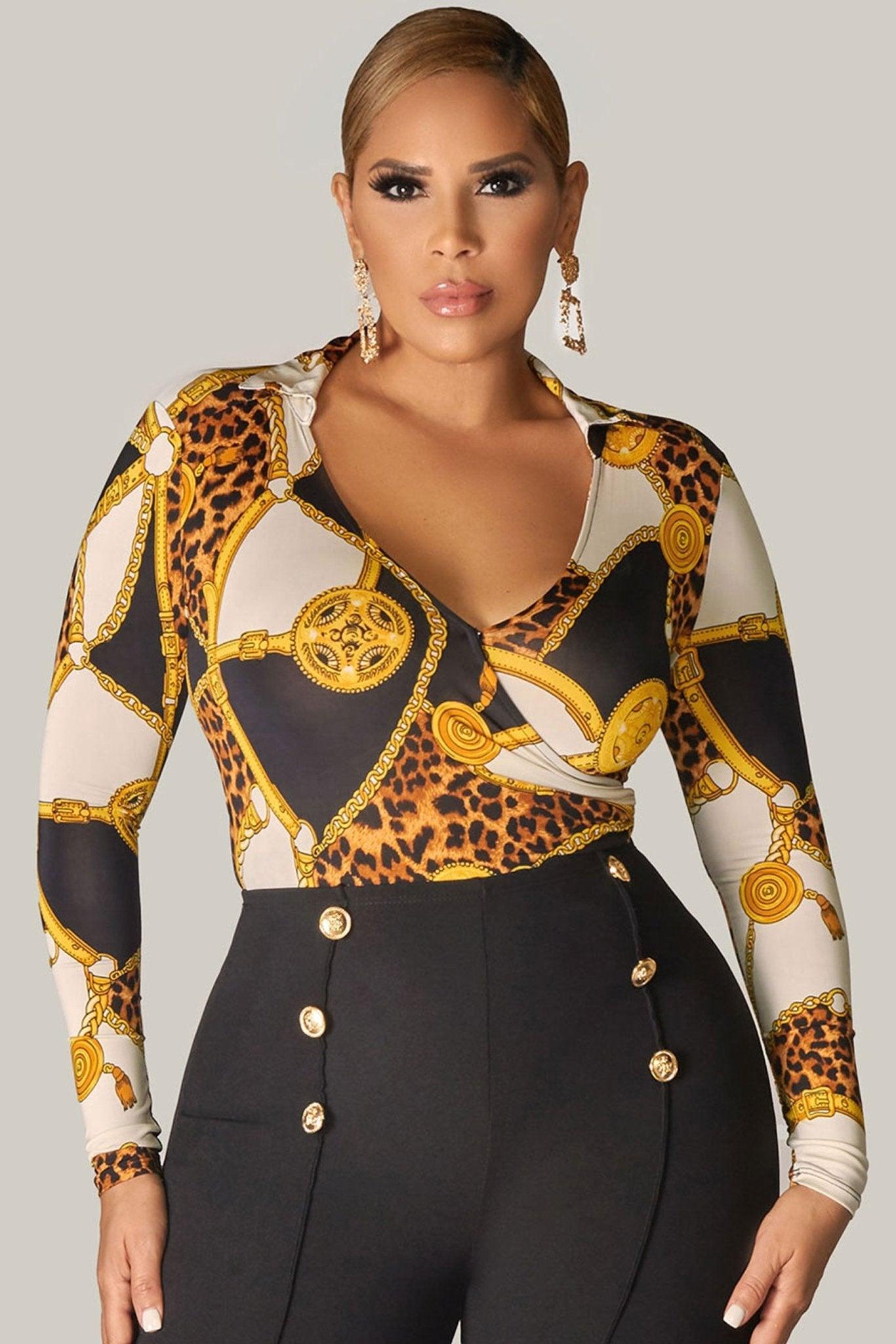 Chain Halter Neck Baroque Chain Printed Bodysuit