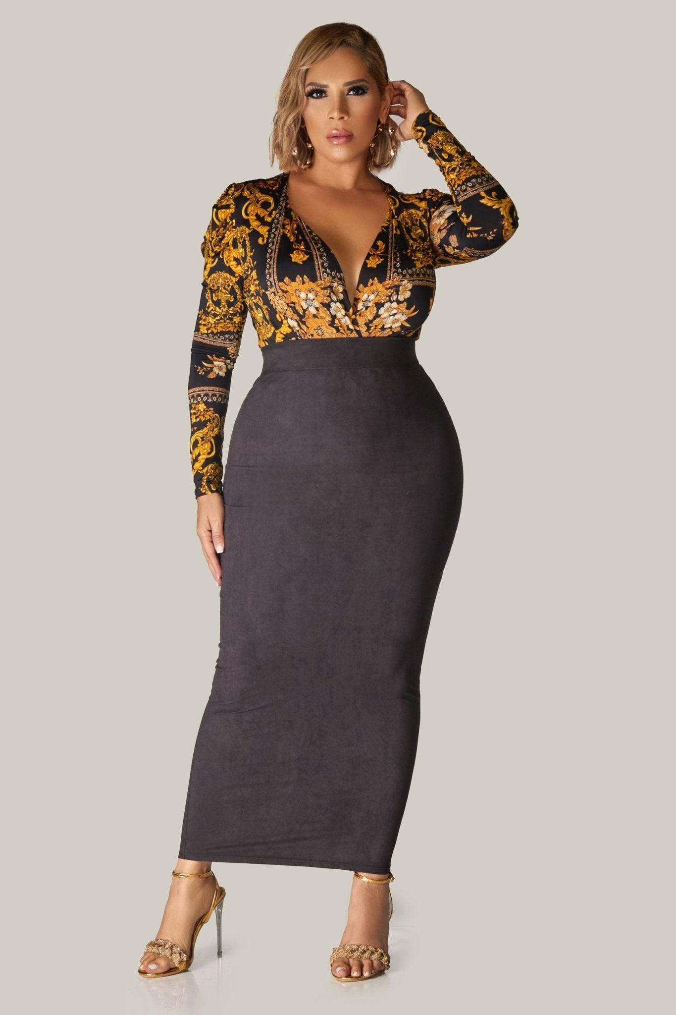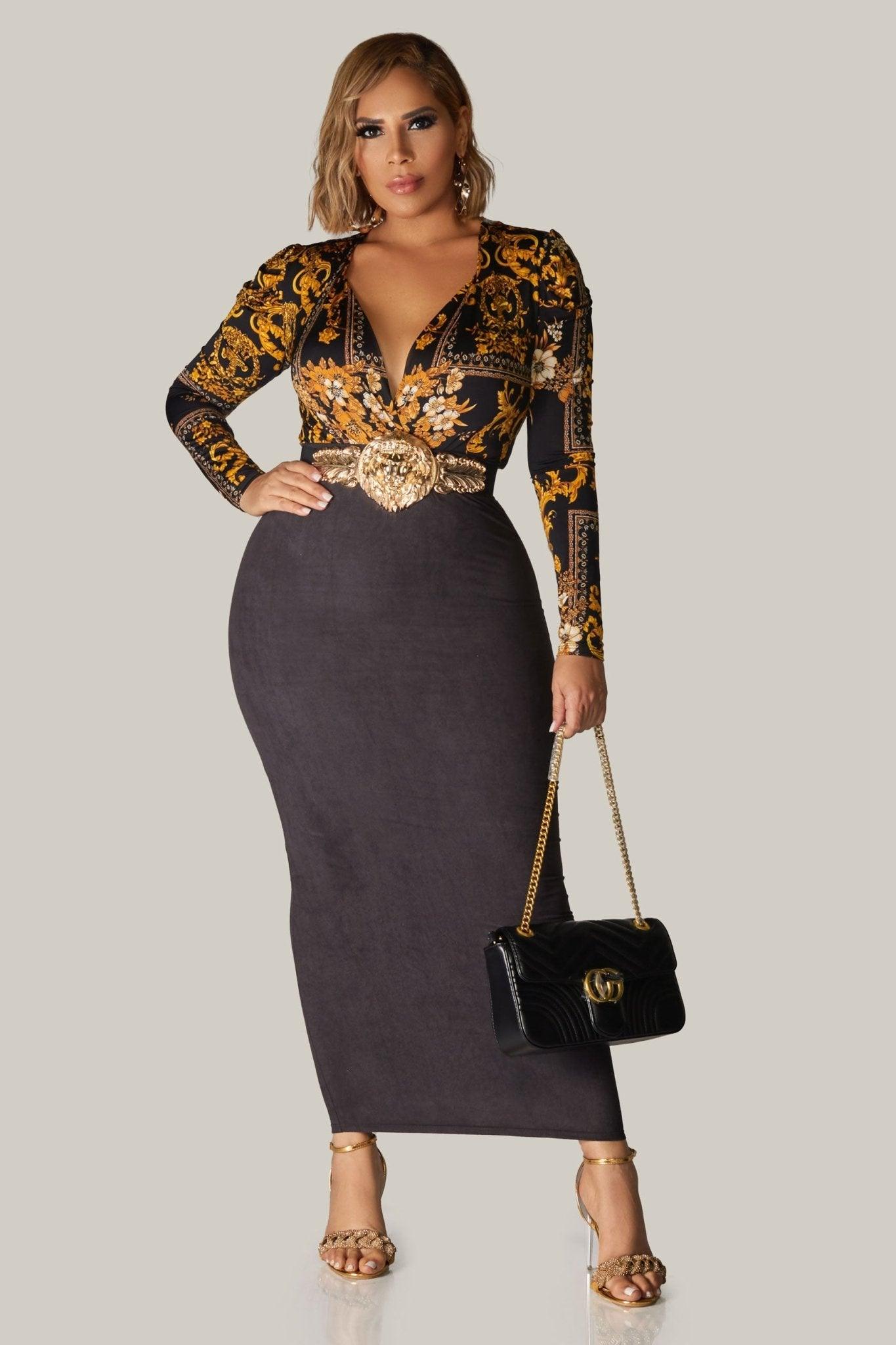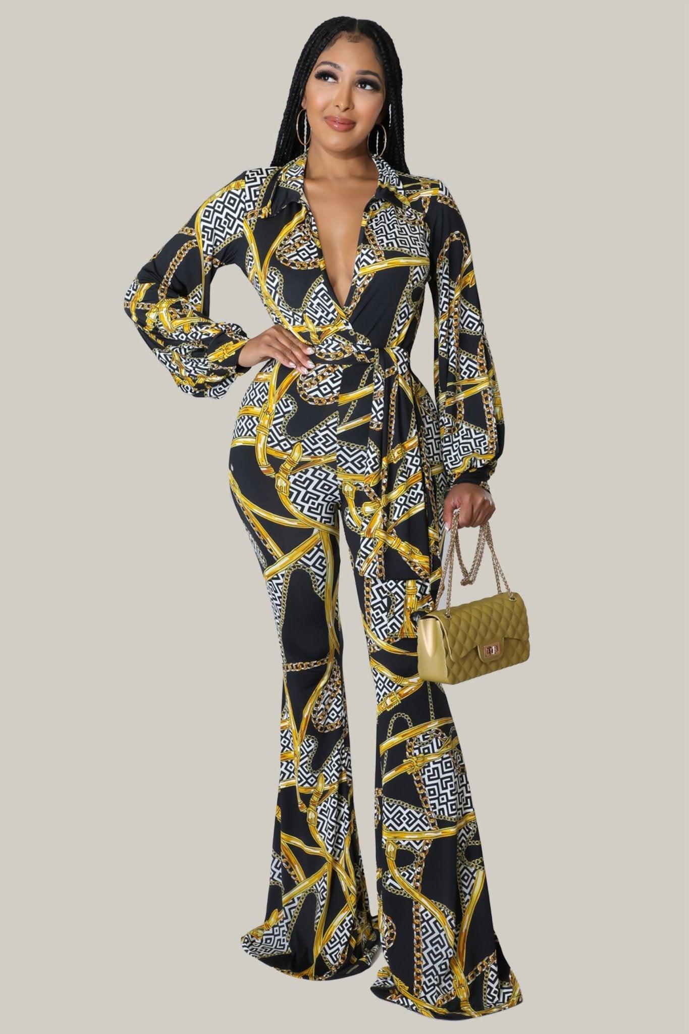 Chain Halter Neck Baroque Chain Printed Bodysuit
