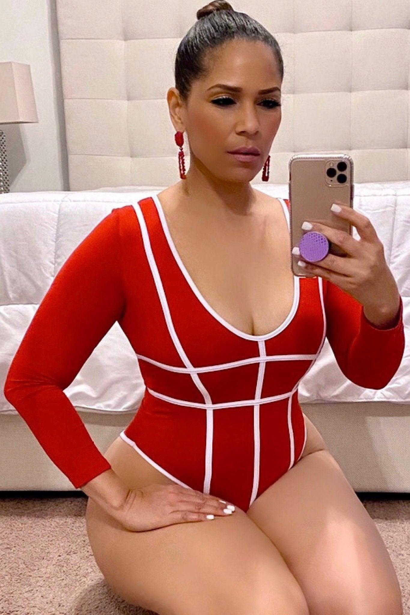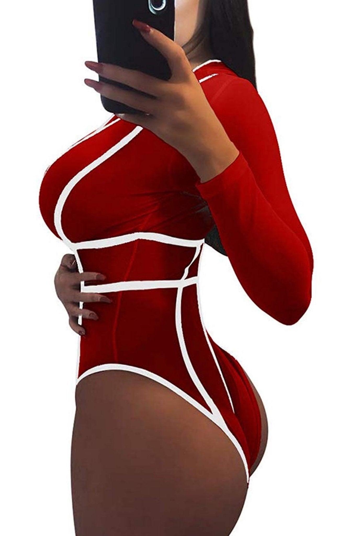 Leni Sexy V-Neck Long Sleeves Stripe Bodysuit