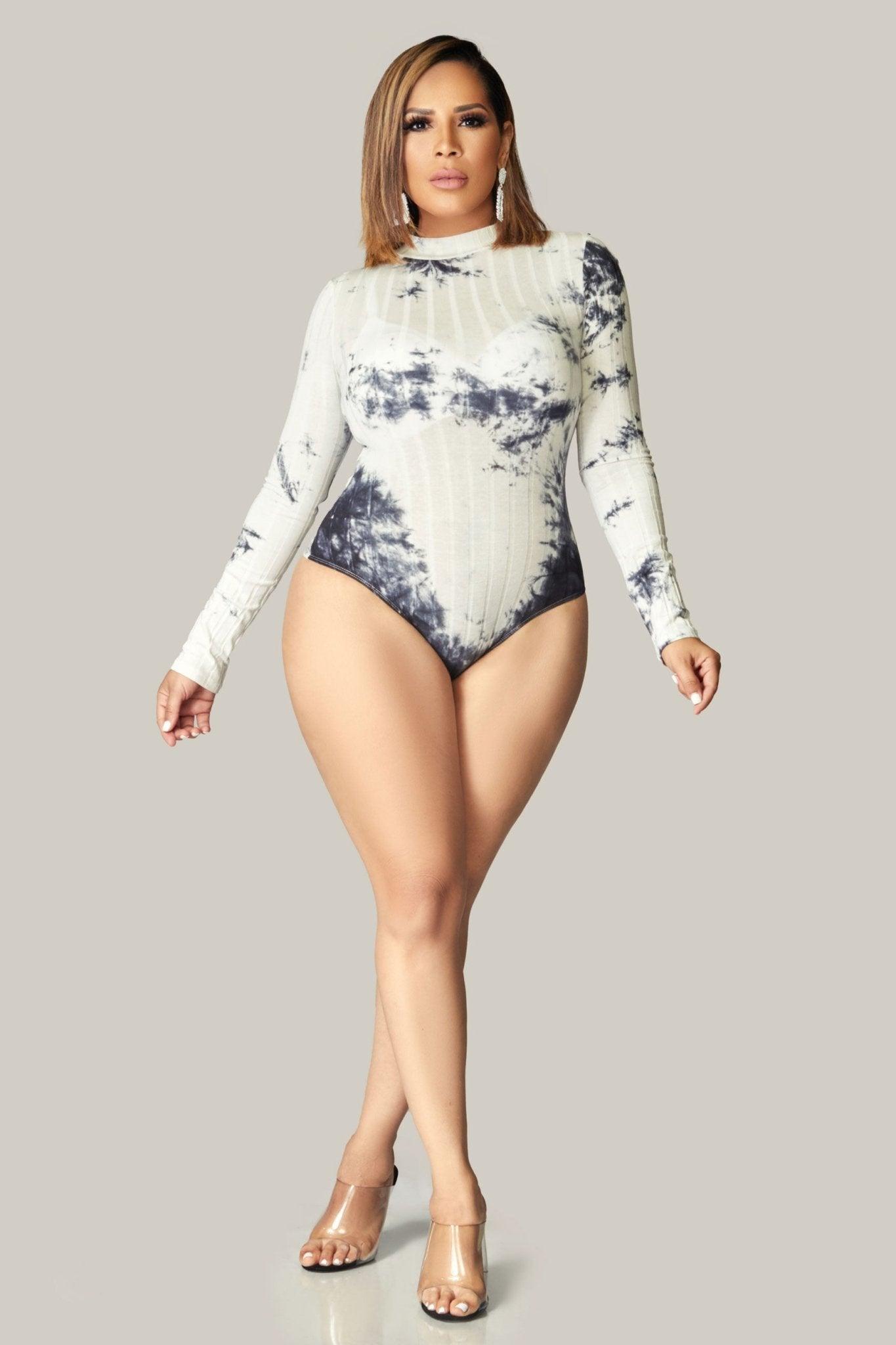 Wanda Long Sleeve Mock Neck Tie Dye Printed Ribbed Bodysuit