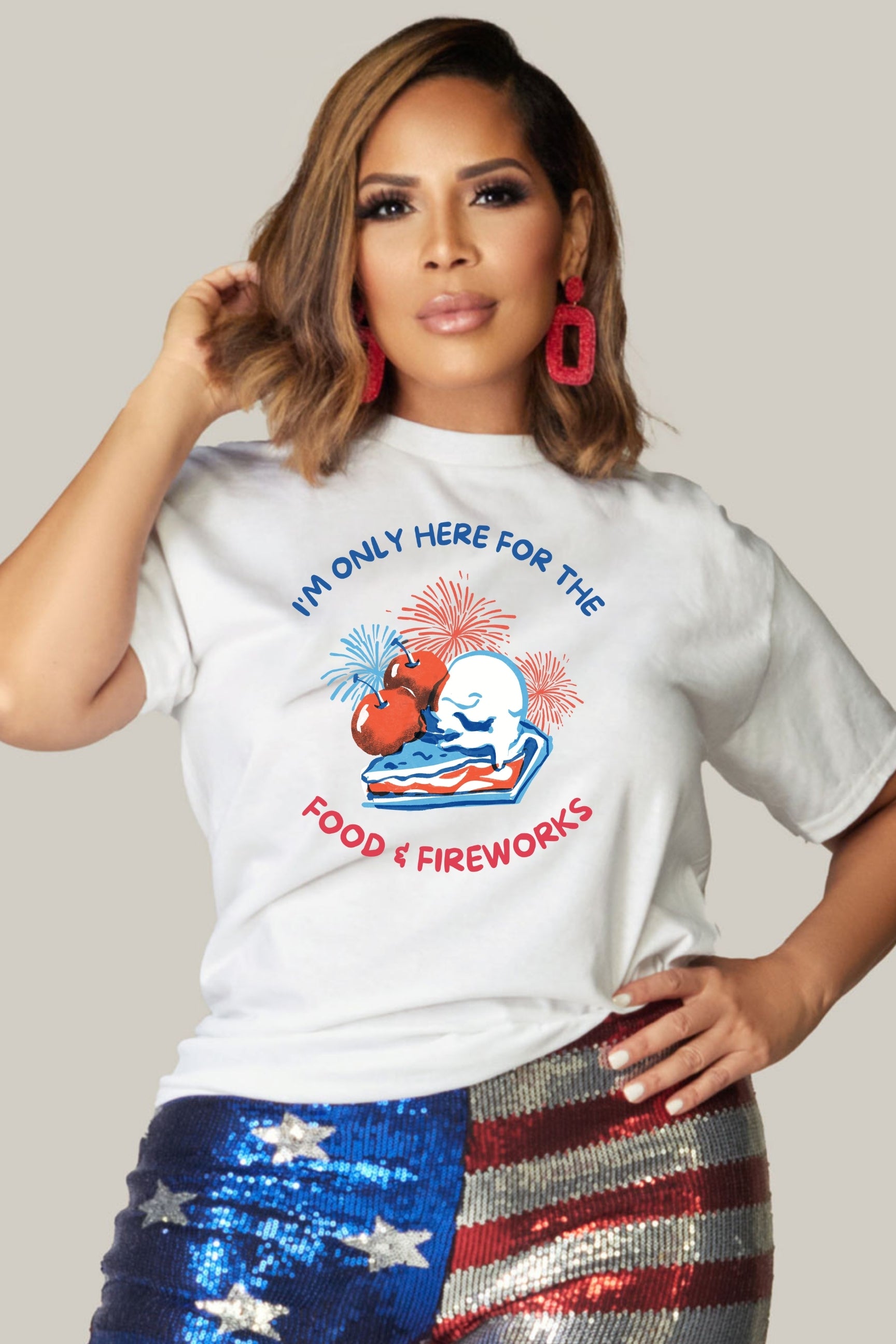 I'm Only Here for the Food and Fireworks Unisex Jersey Short Sleeve T-Shirt