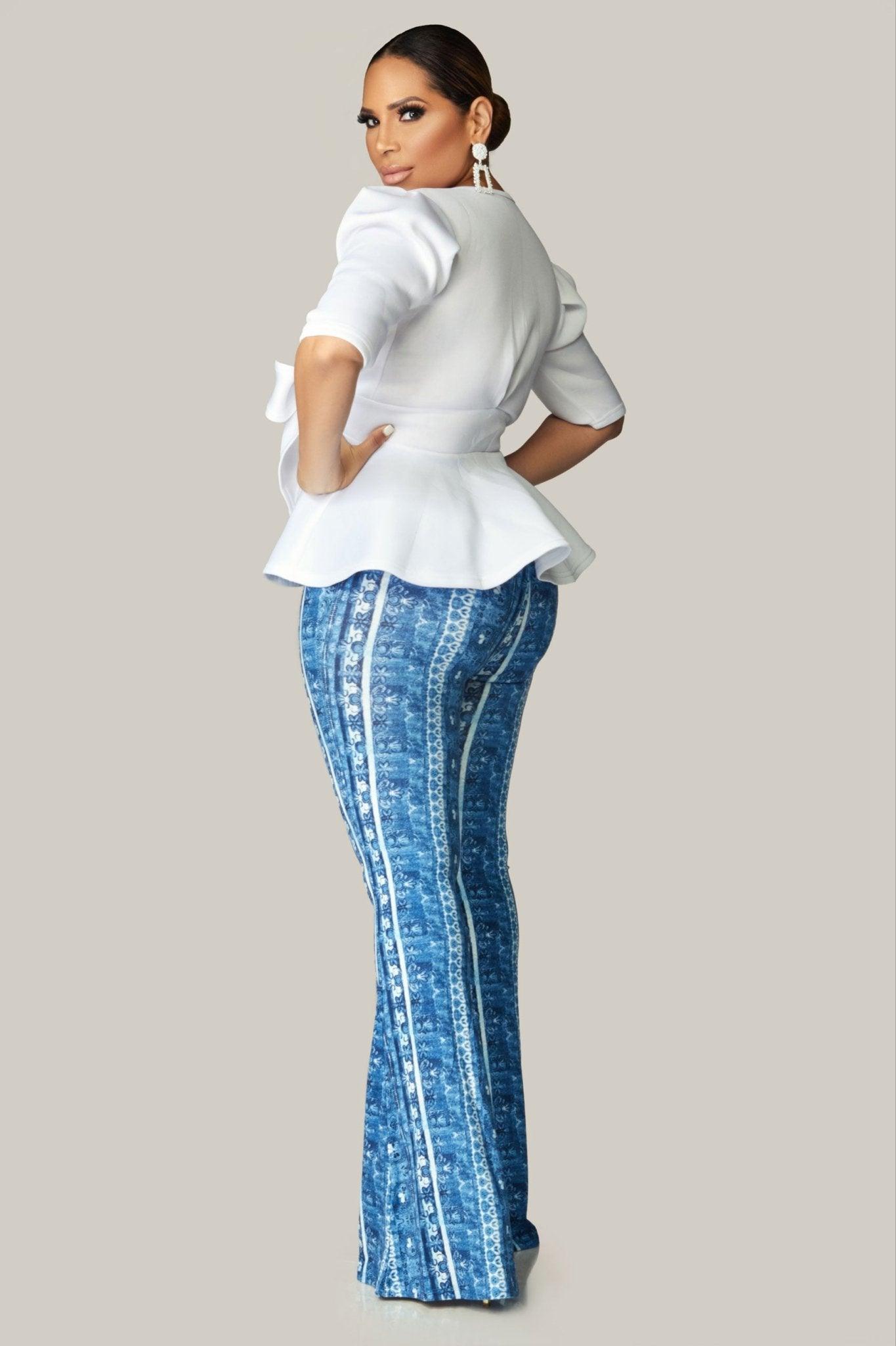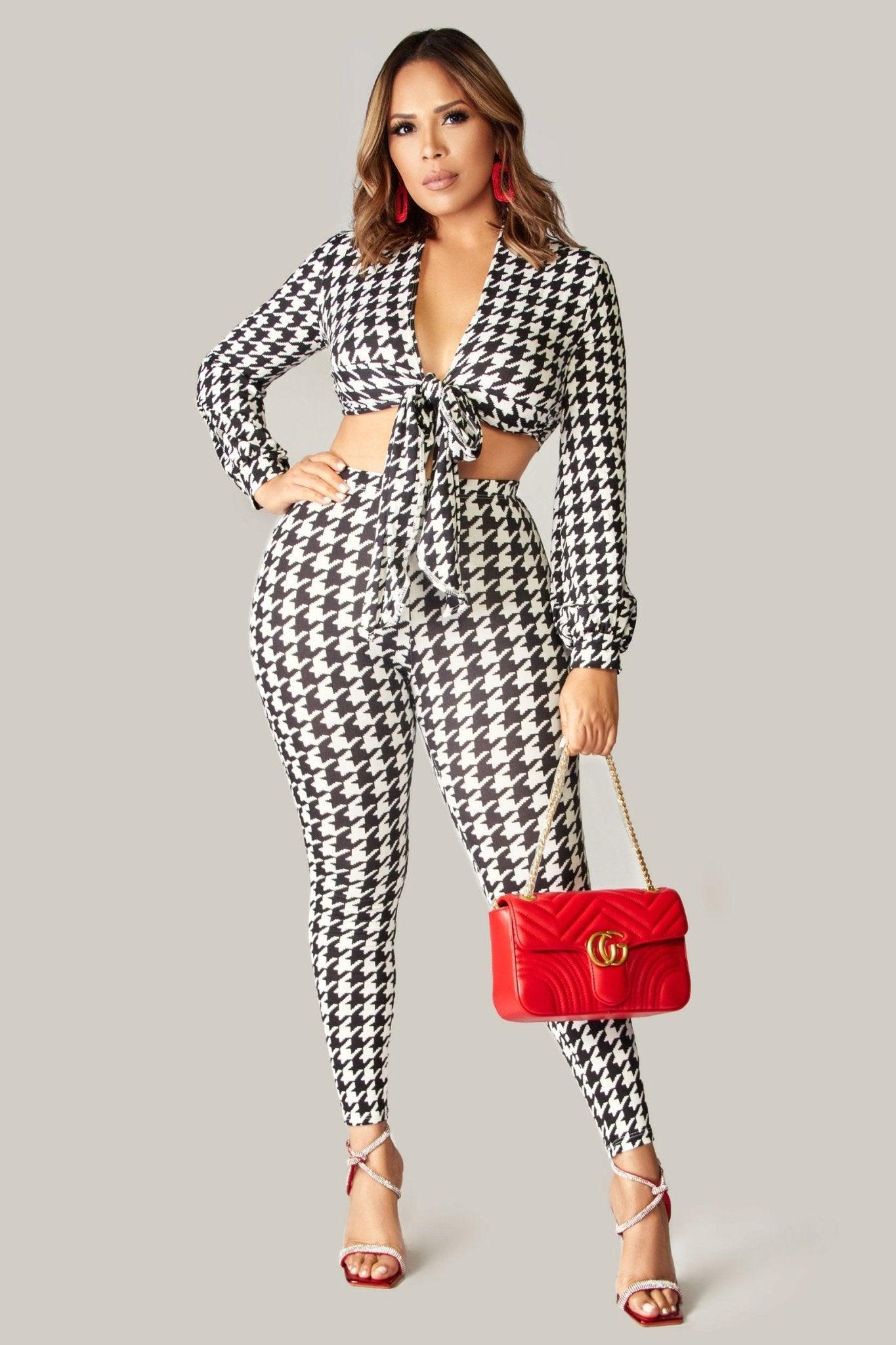 Tacey Black Striped Frill Shoulders Two Piece Pants Set