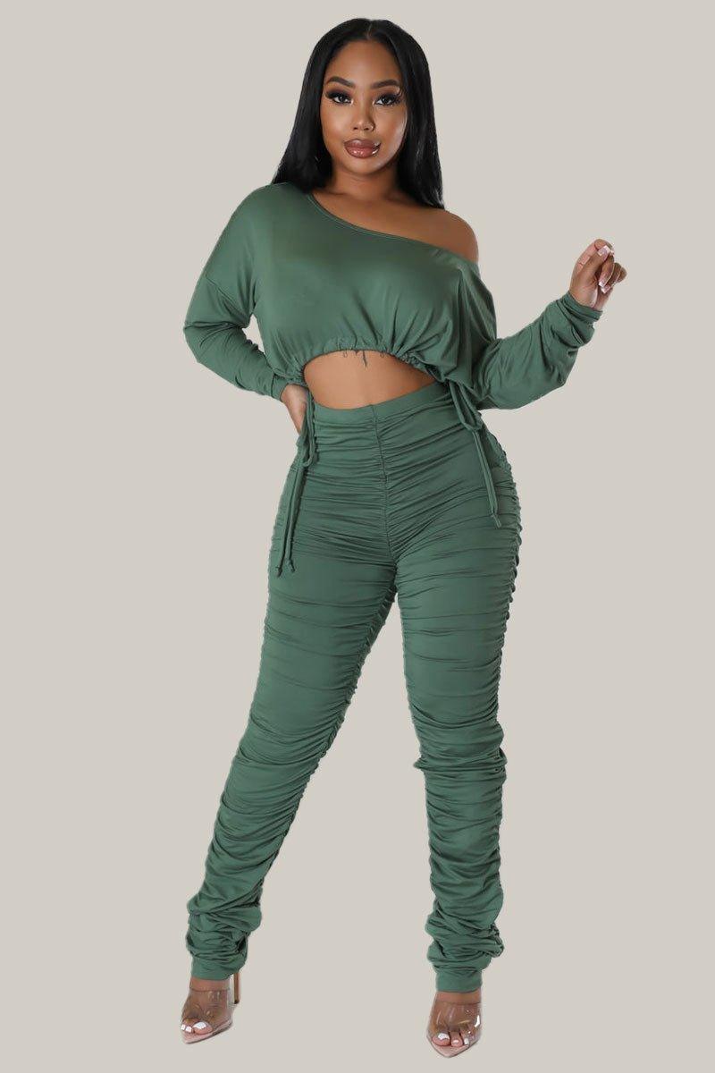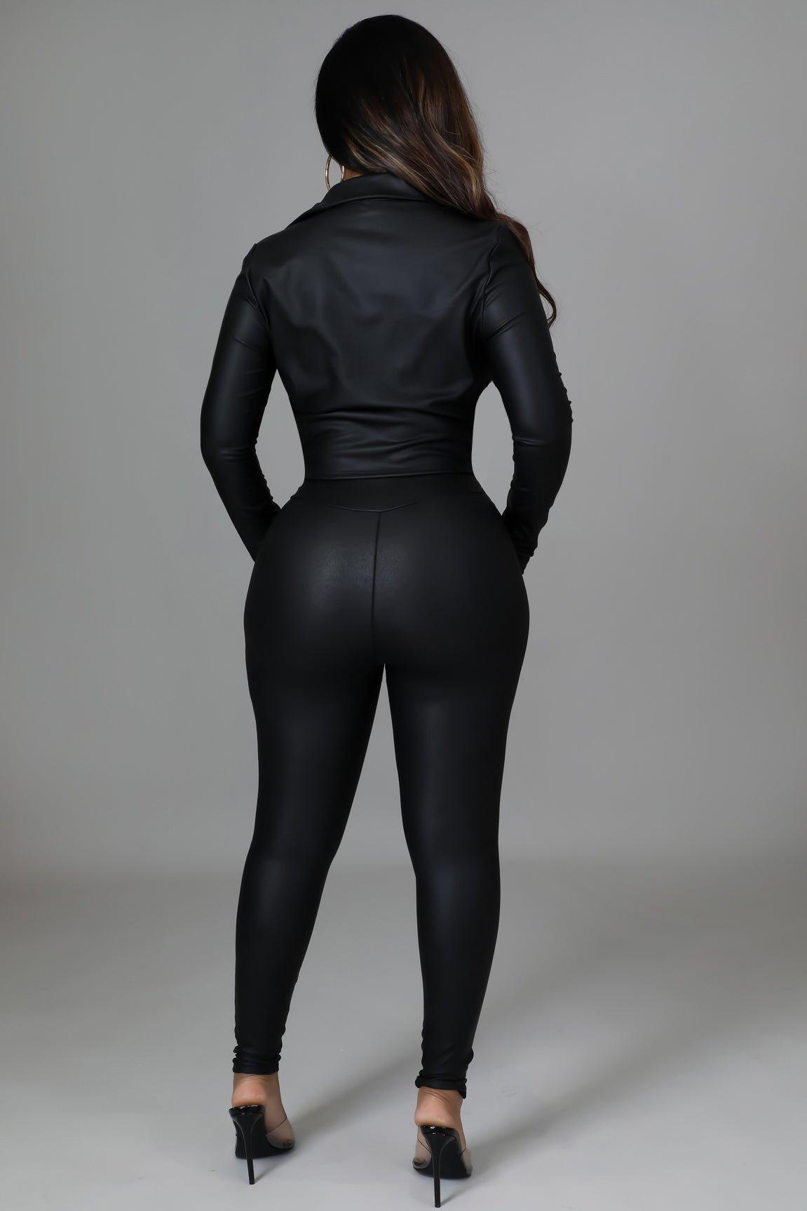 Marlee Faux Leather Ruched Leggings and Tank Set