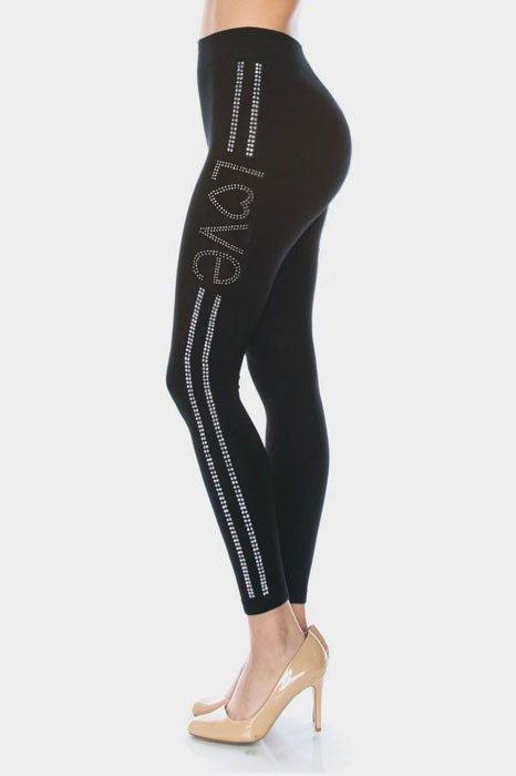 Side Crystal Pave Stripe "LOVE" Detail Leggings (PLUS ONLY)