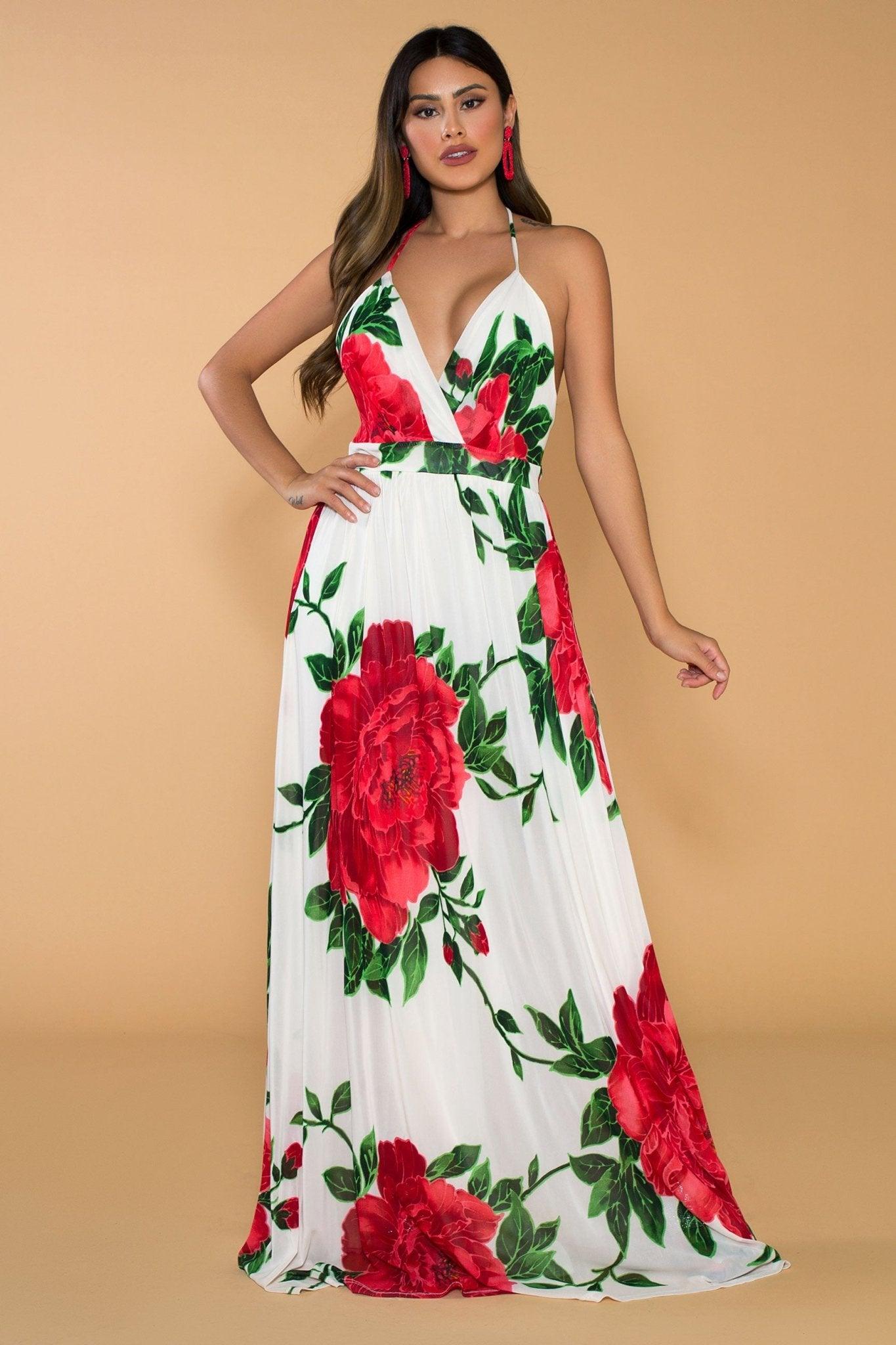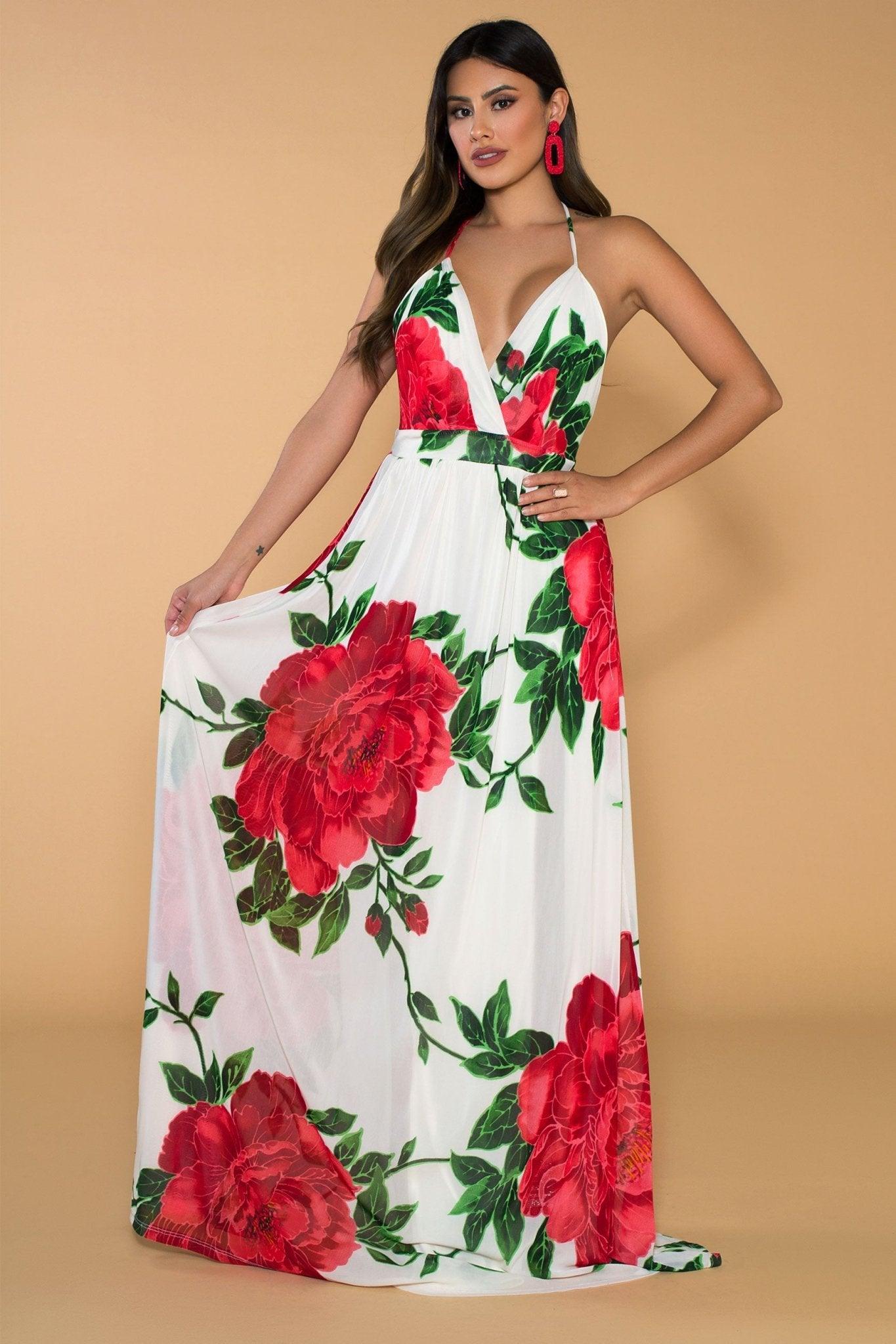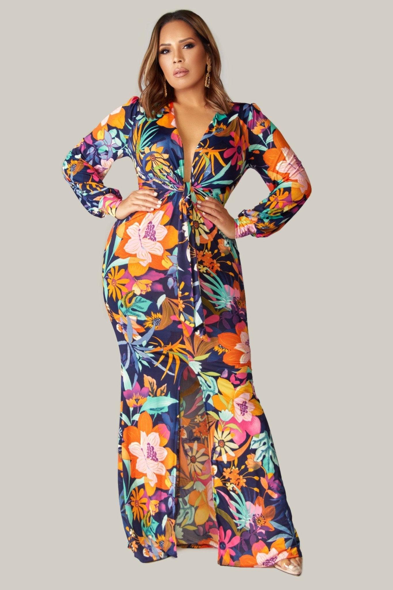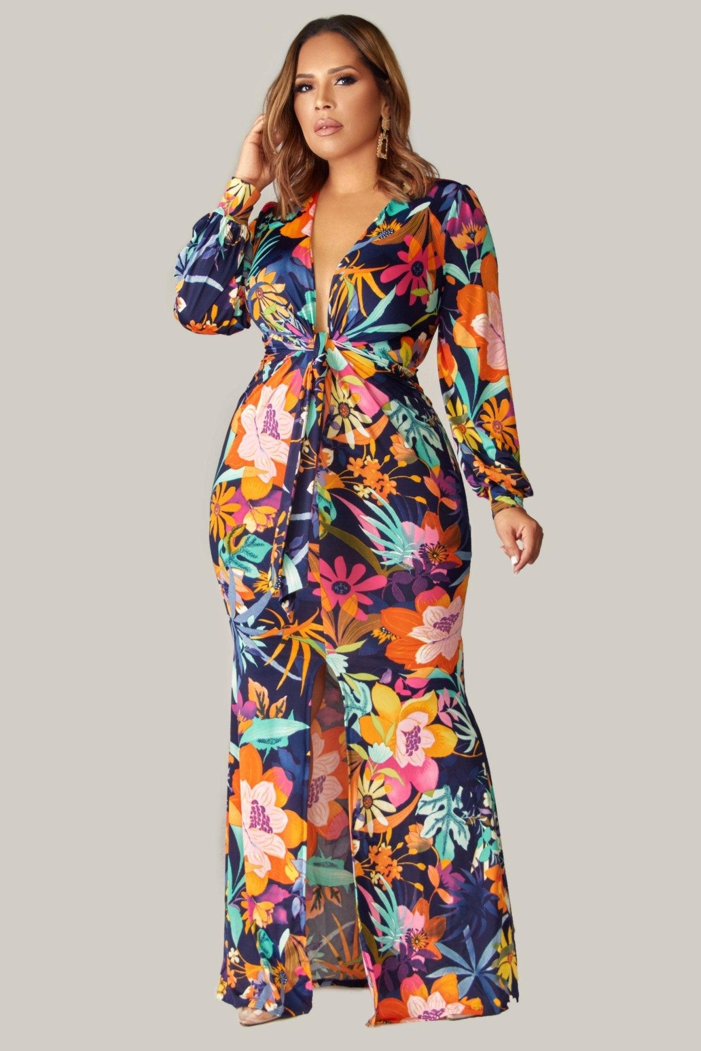 Lenox Elegant Floral Print Maxi Bodycon Dress
