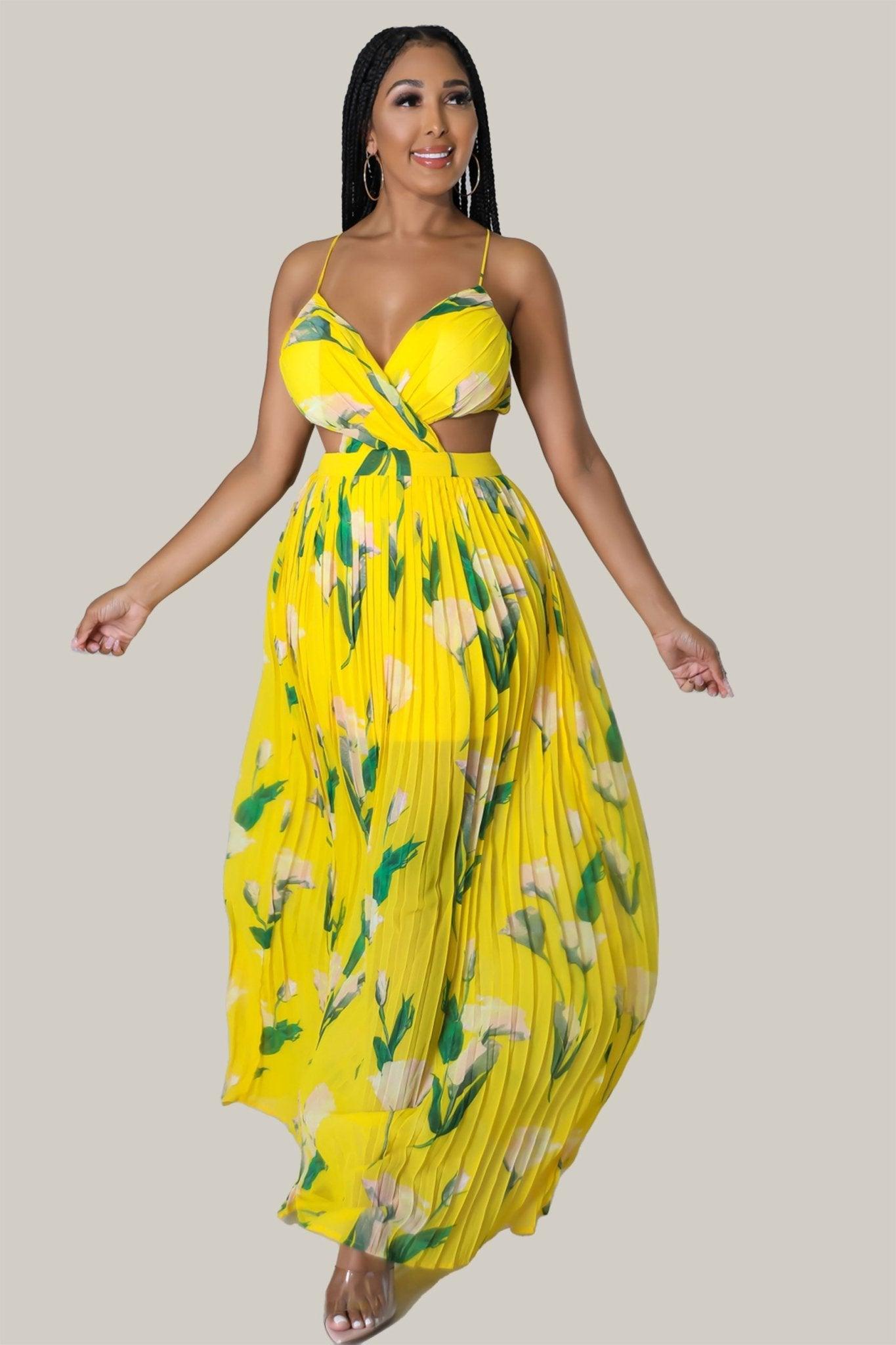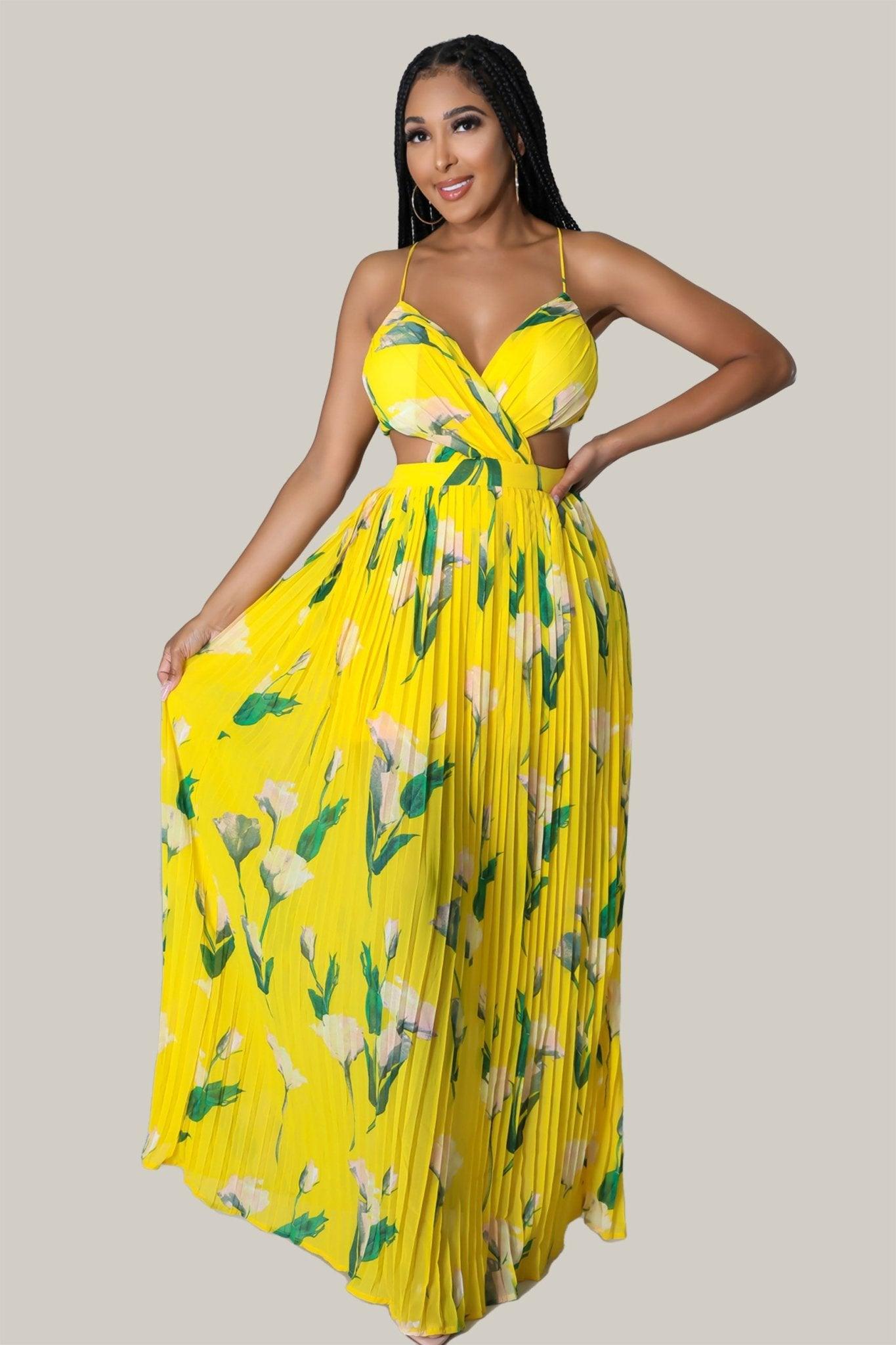 Abigail Tie Neck Floral Print Pleated Maxi Dress