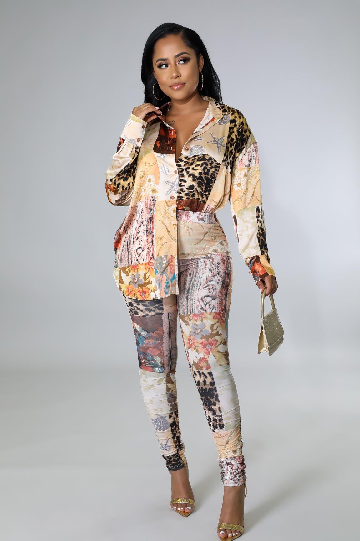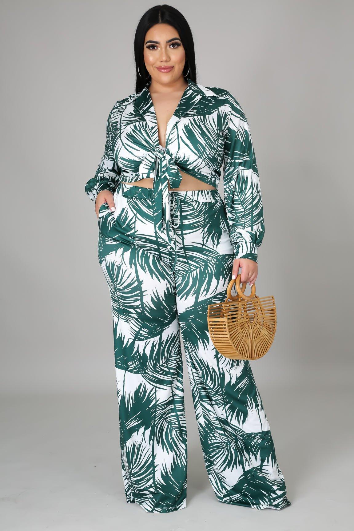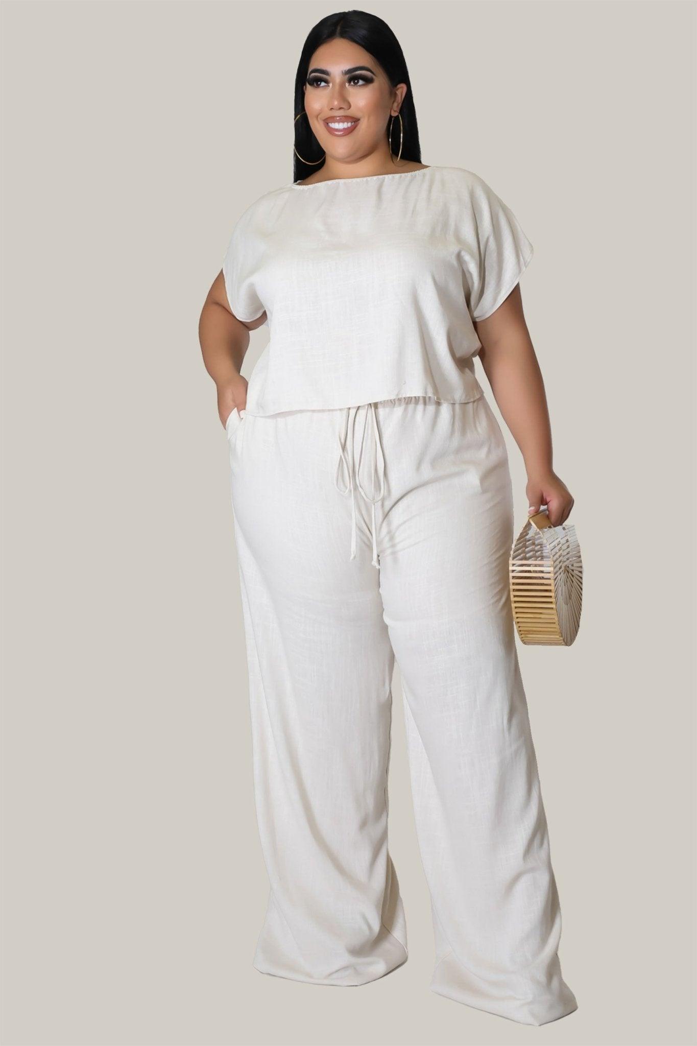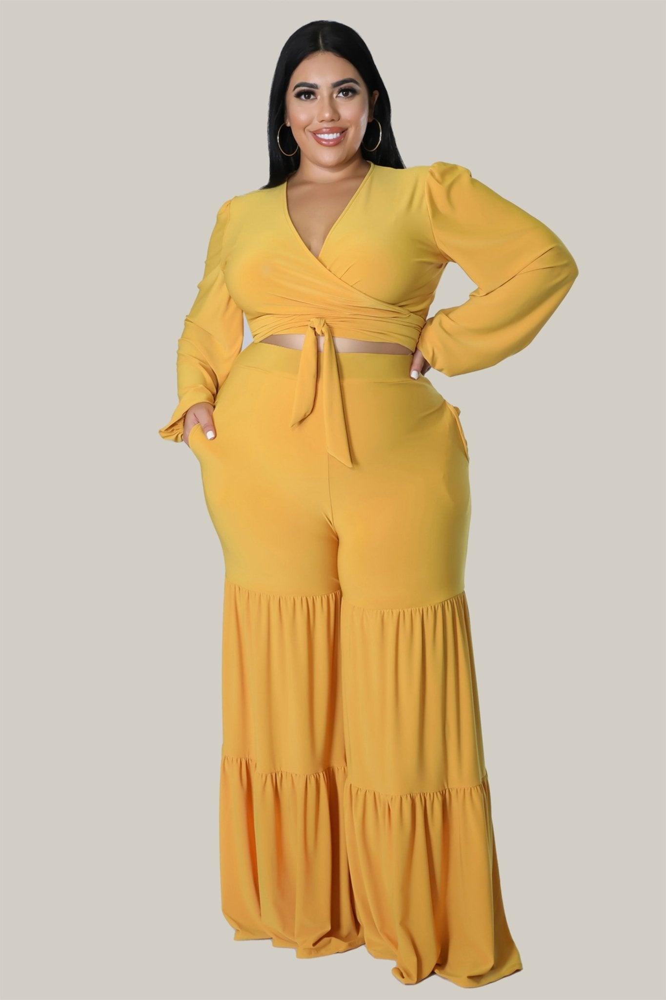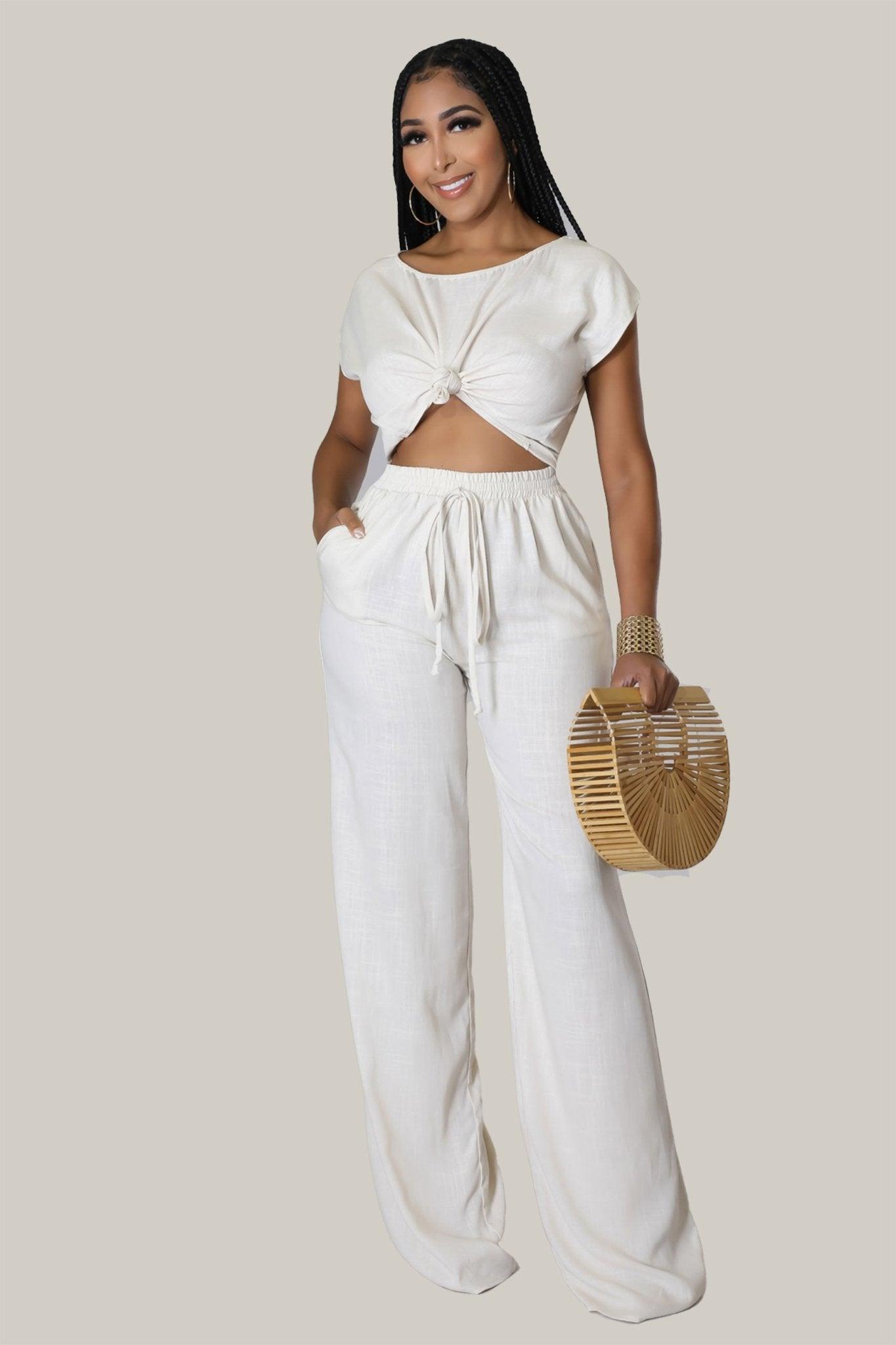 Mia Stacked Neck Top And Wide Leg Pants Two Piece Set