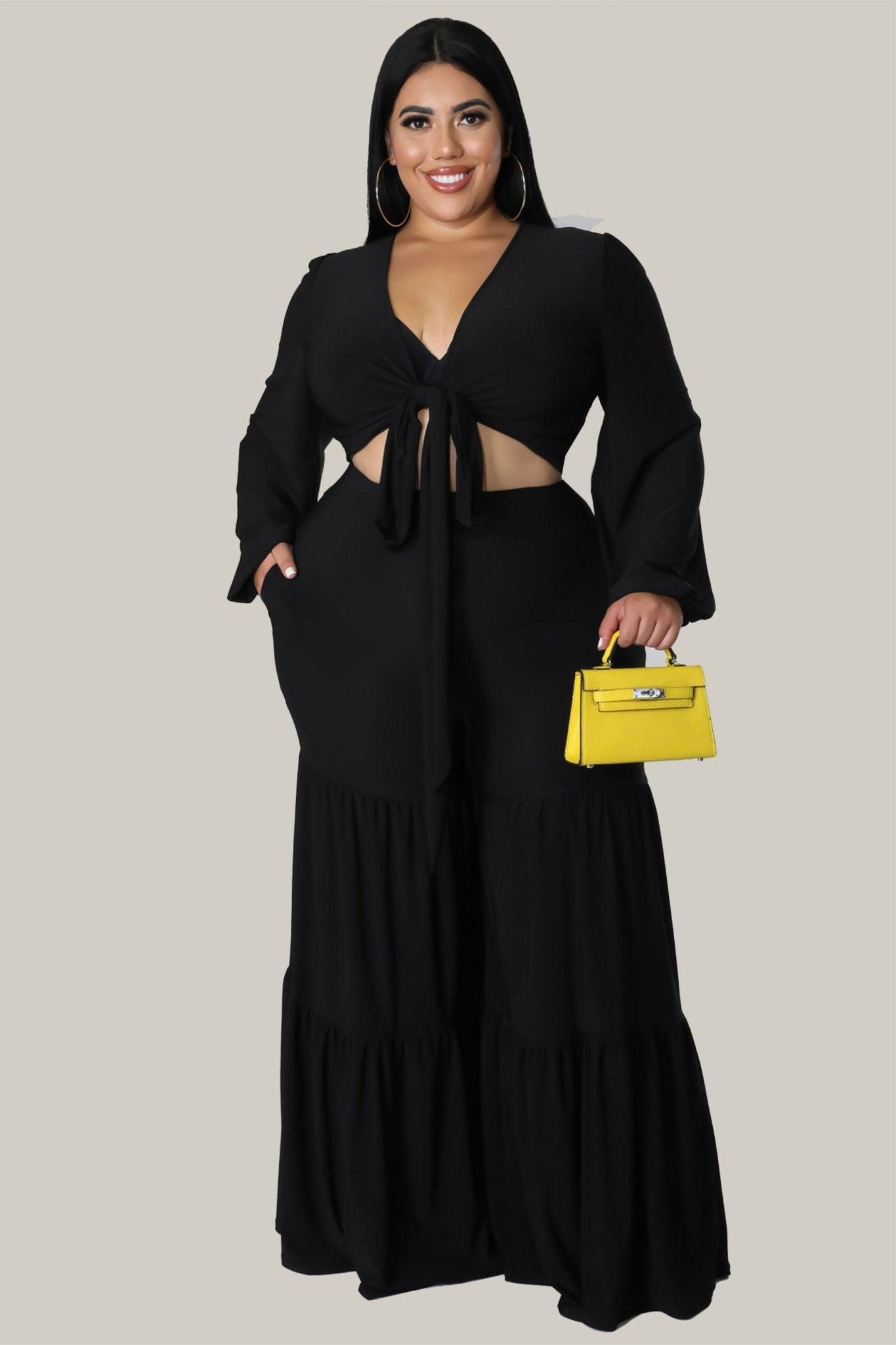 Tacey Black Striped Frill Shoulders Two Piece Pants Set