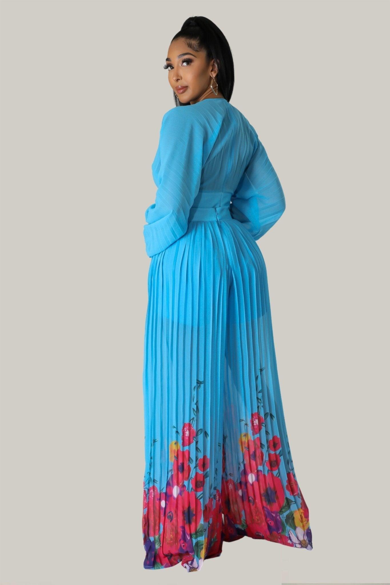 Camelia Long Sleeve Top Pleated Skirt Two-Piece Set