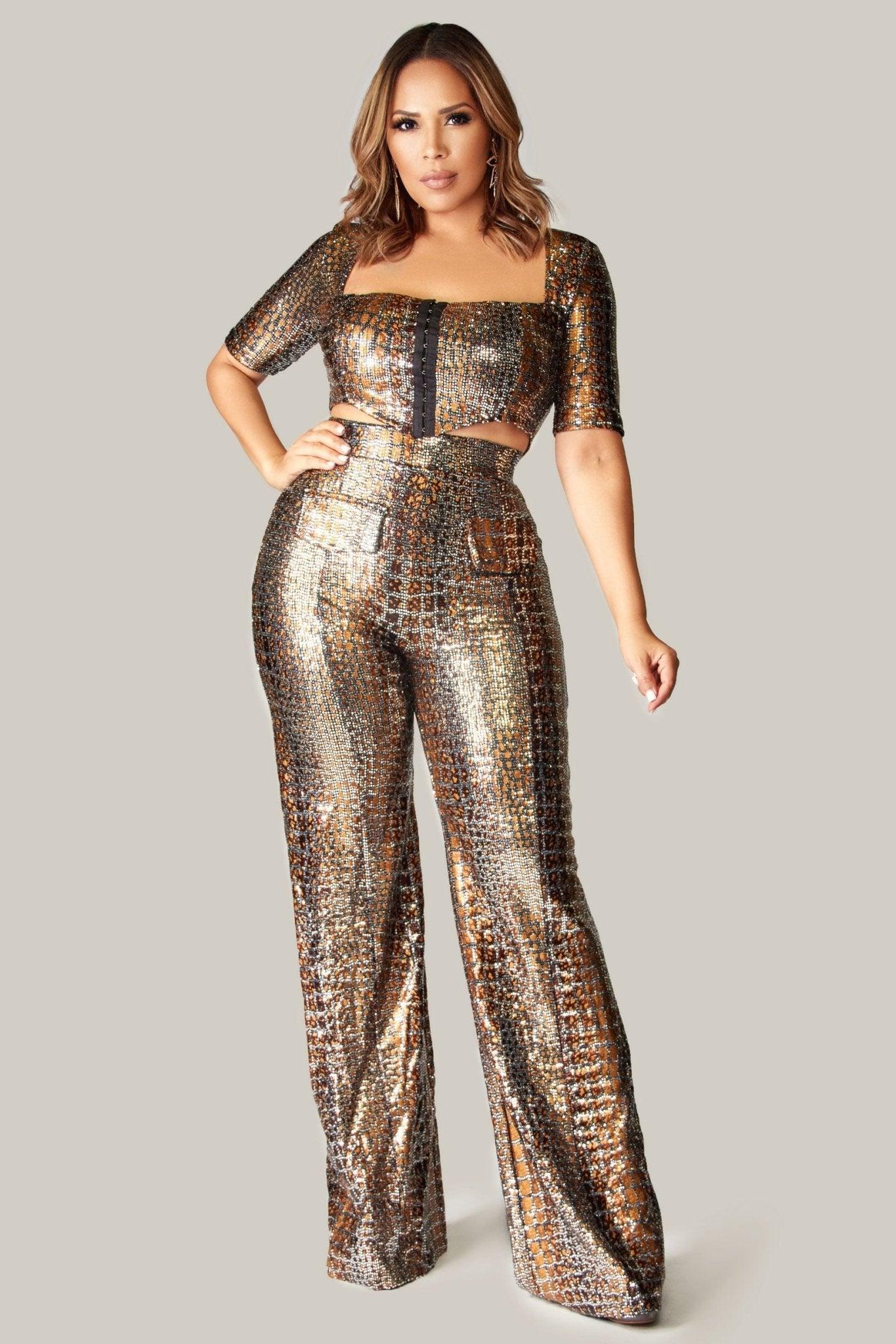 Liliana Babe Sequins Blazer and High Waist Pants Set