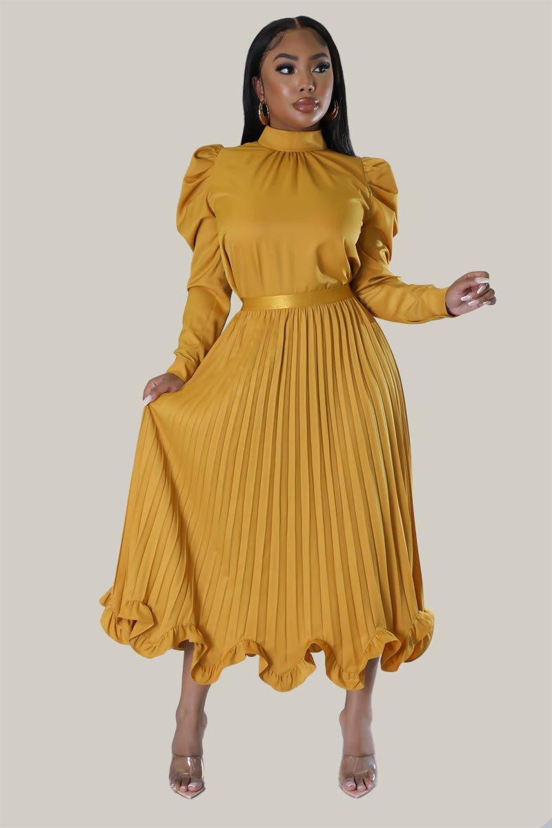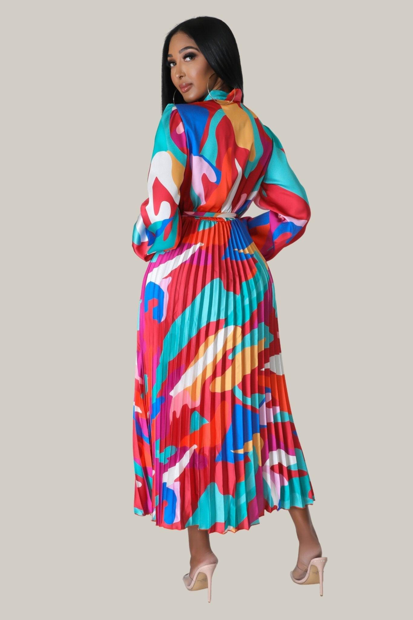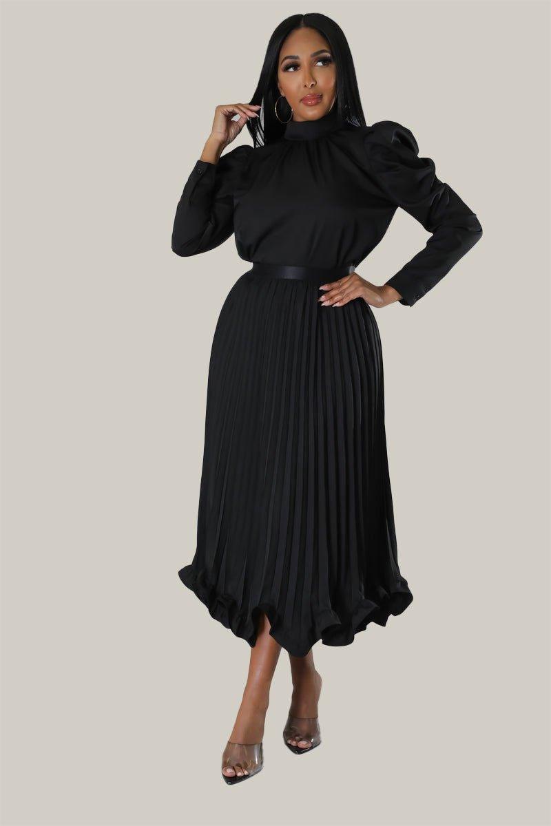 Camelia Long Sleeve Top Pleated Skirt Two-Piece Set