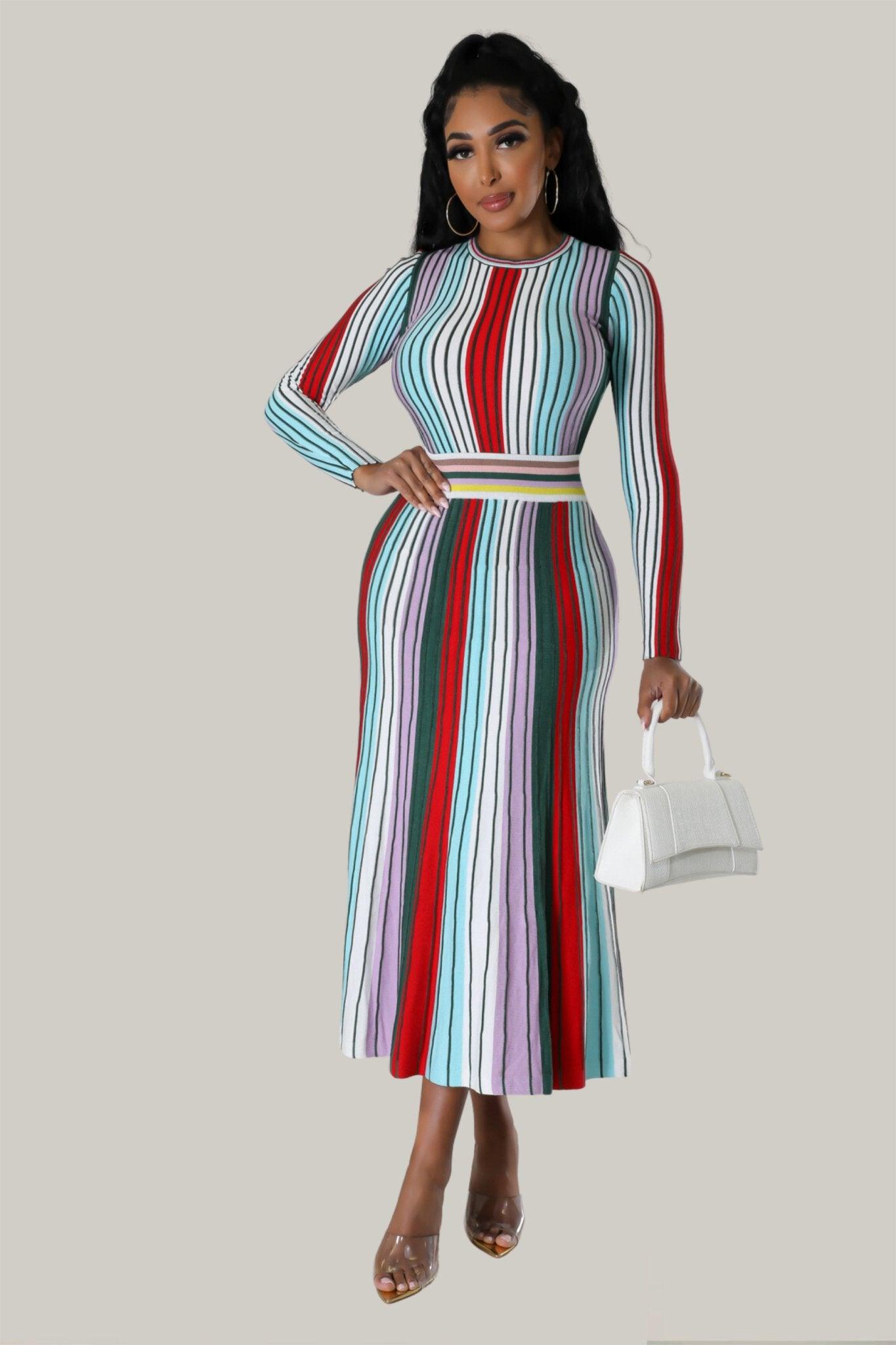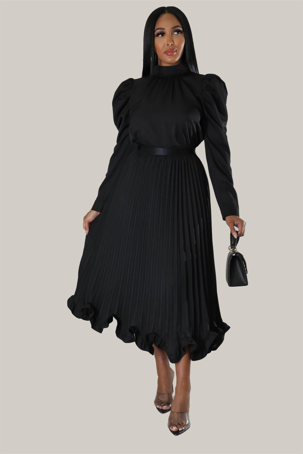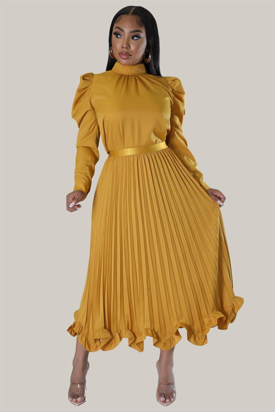 Camelia Long Sleeve Top Pleated Skirt Two-Piece Set