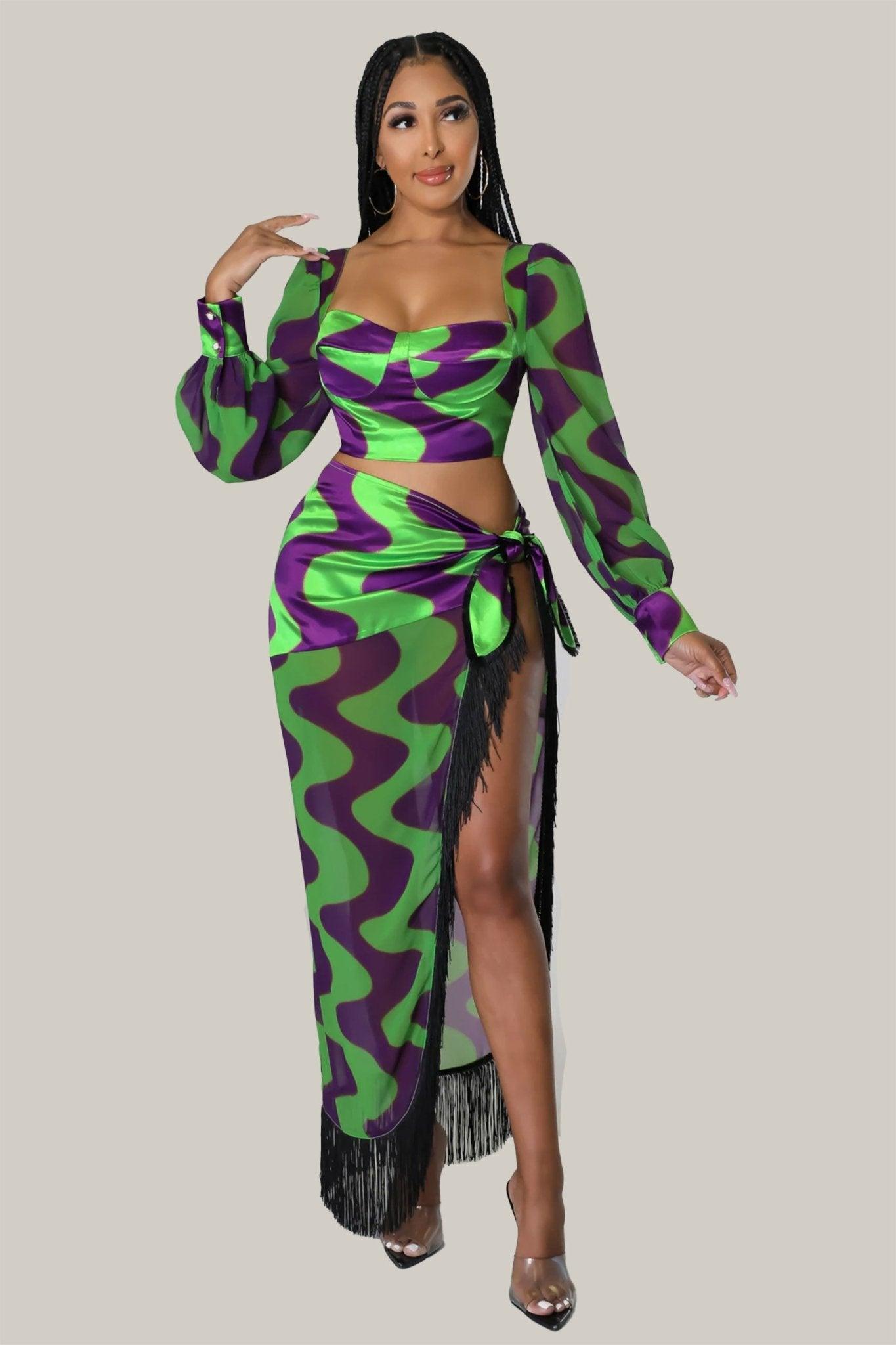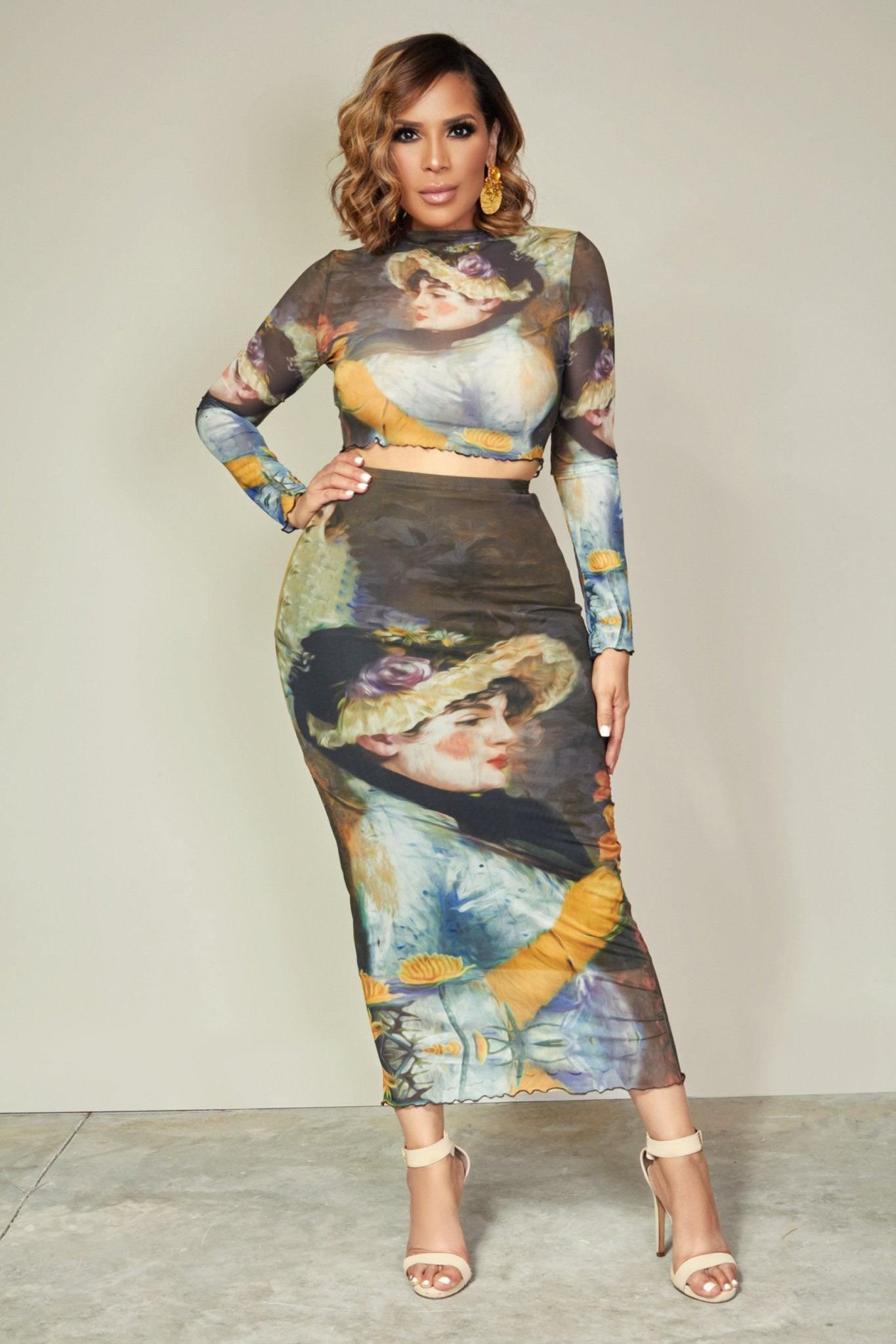 Guadalupe Printed Long Sleeve Blouse and Skirt Set
