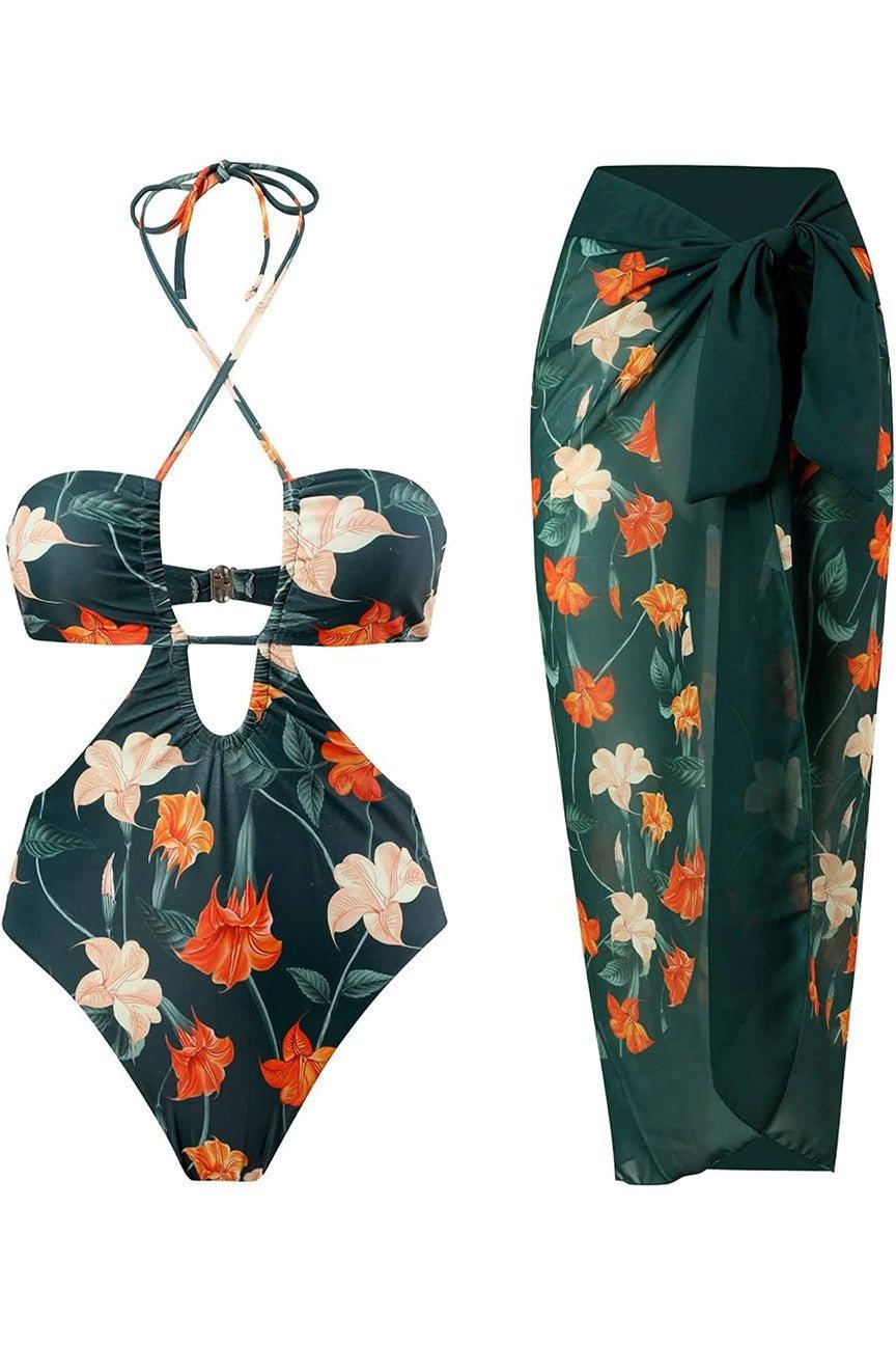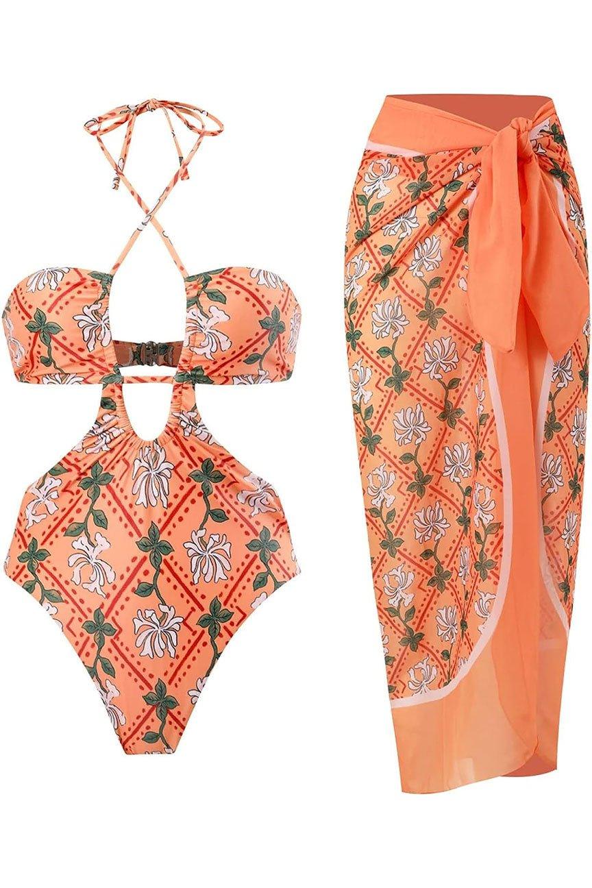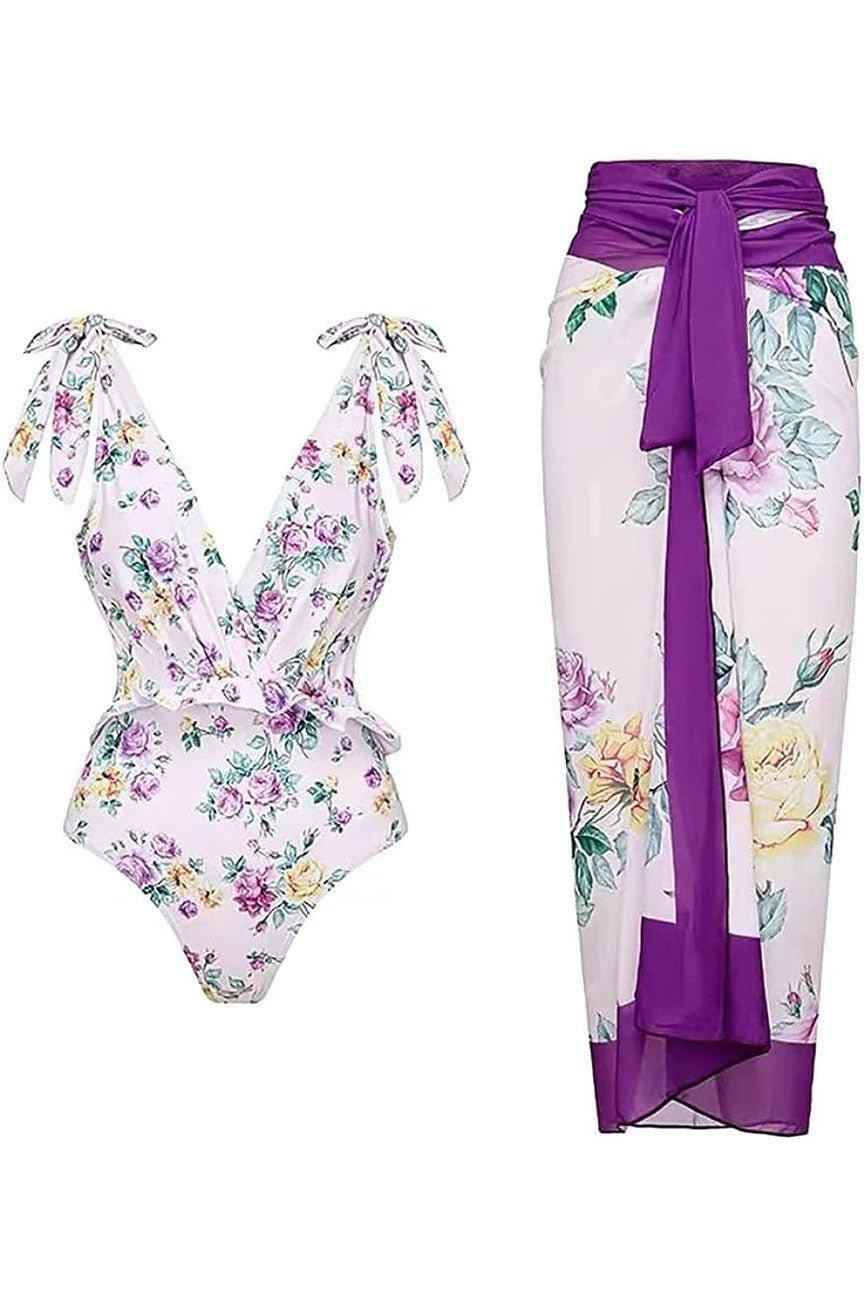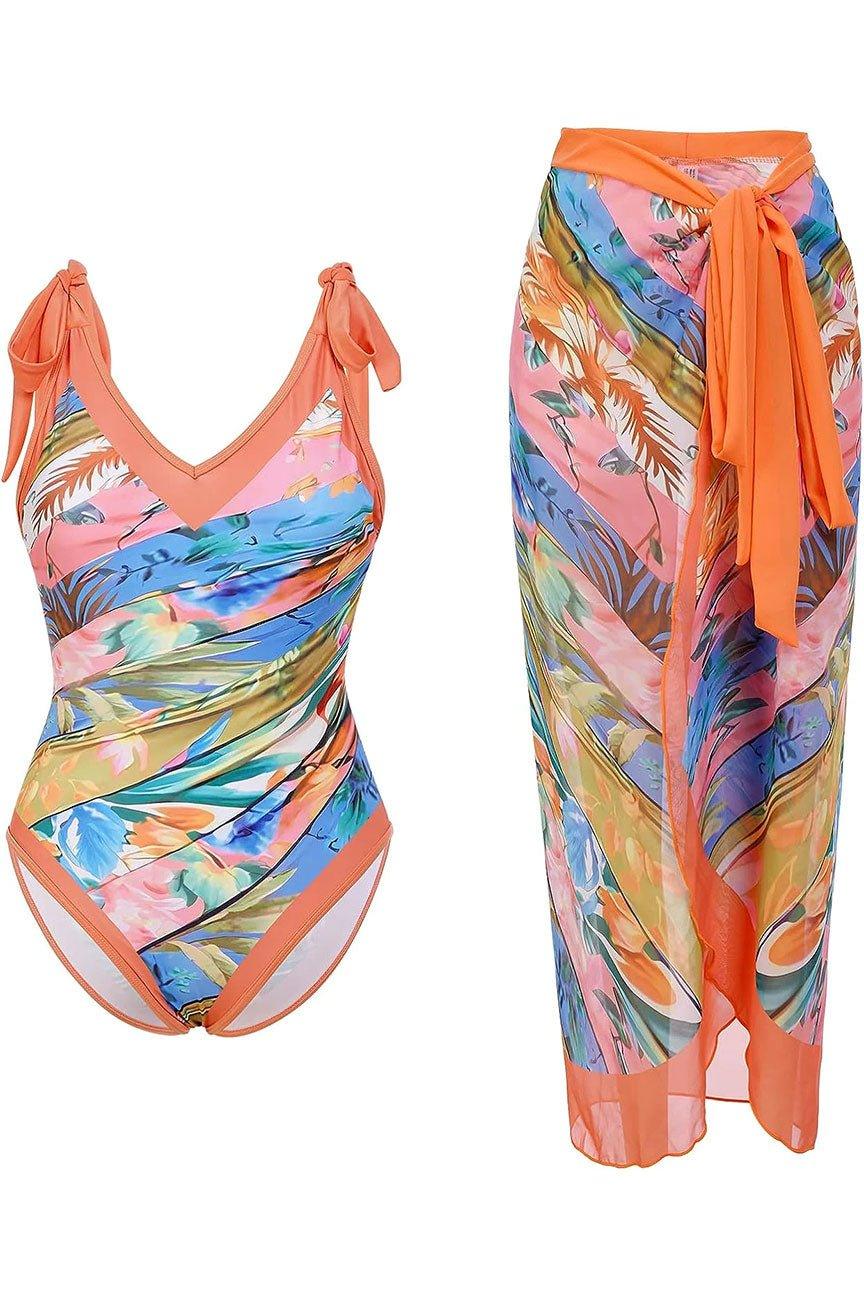 One Piece Swimsuit with Beach Cover up Wrap Skirt