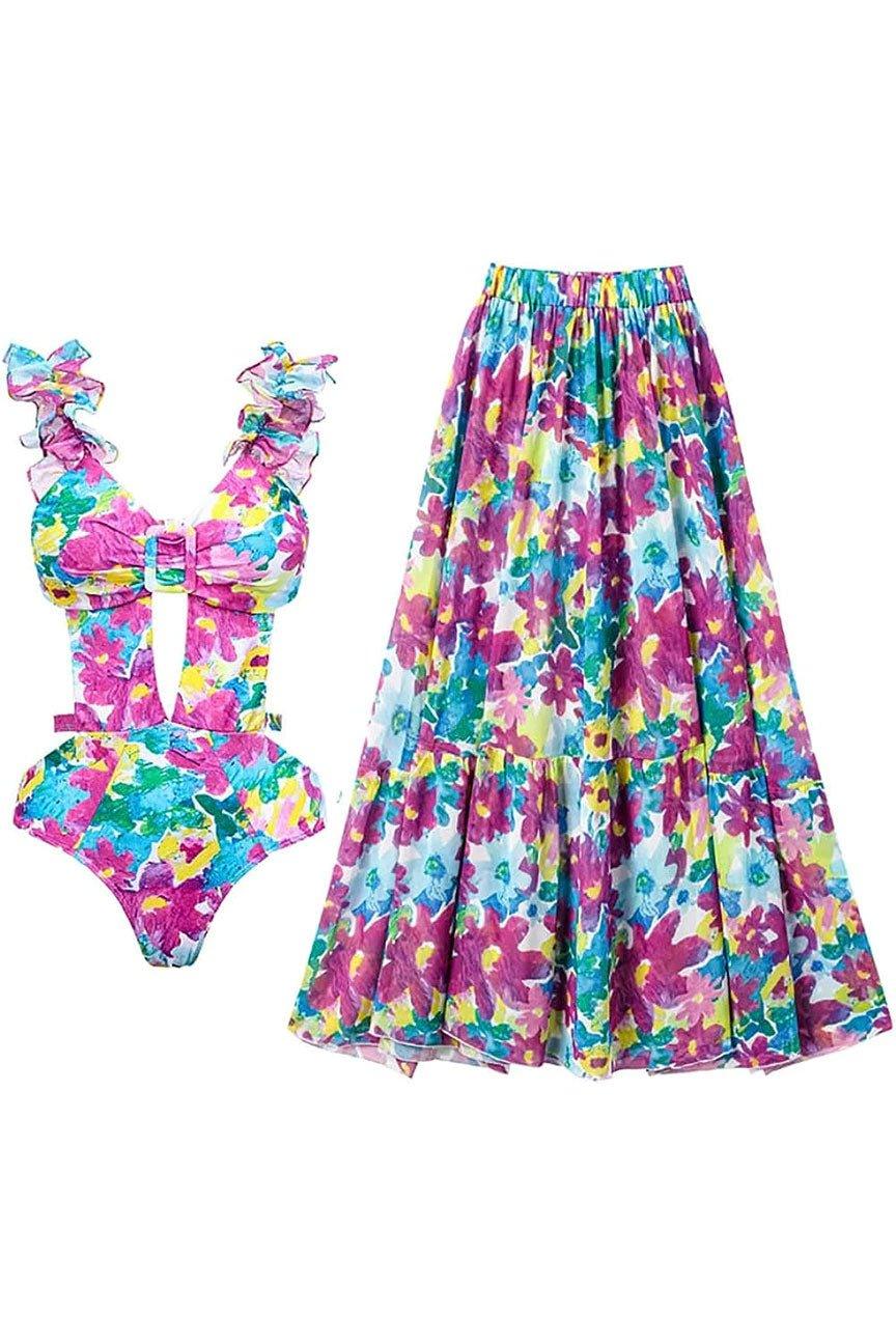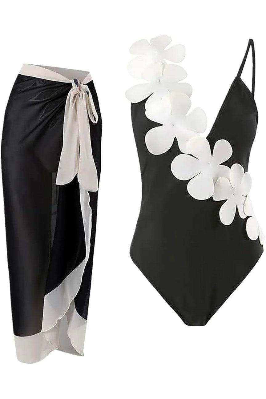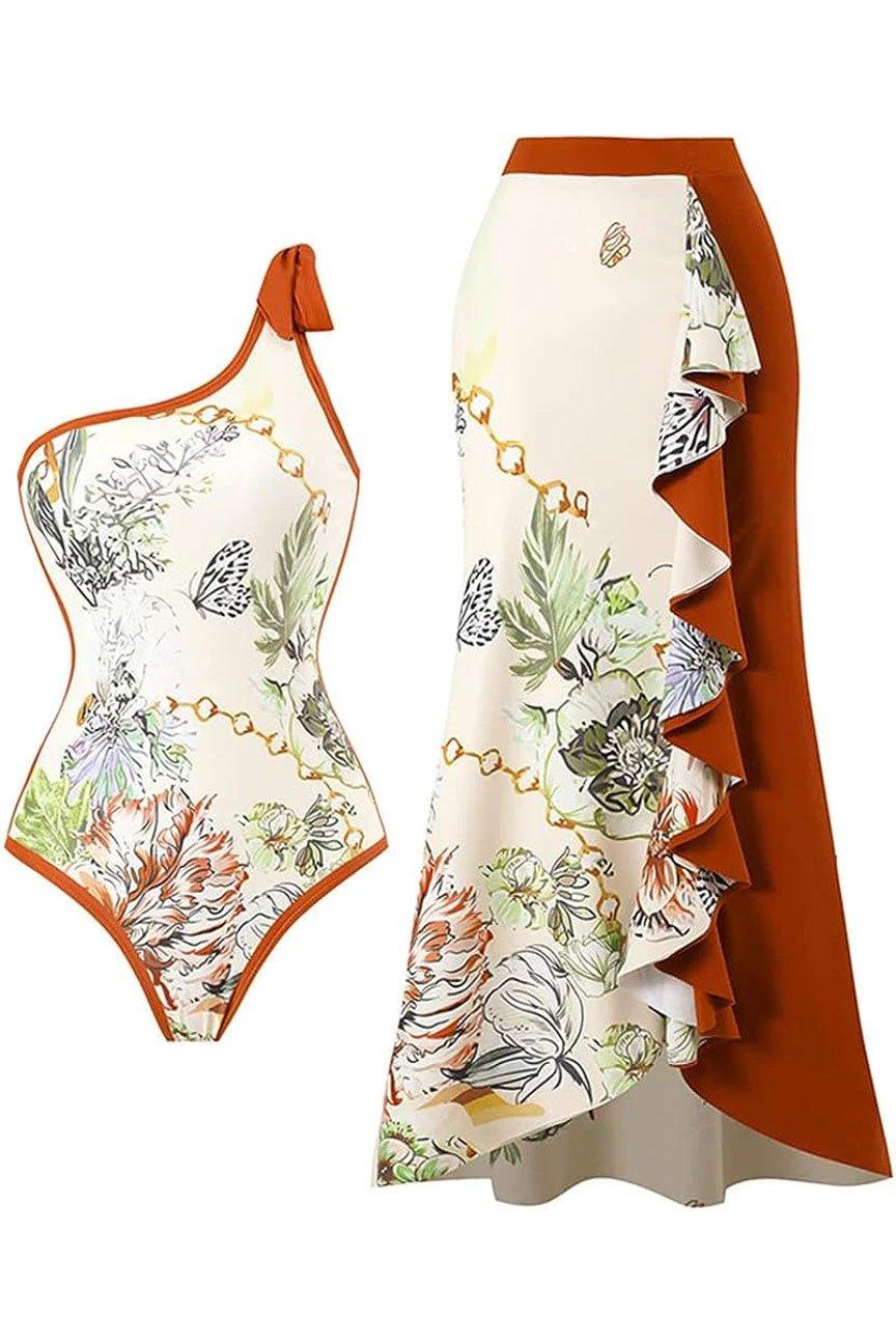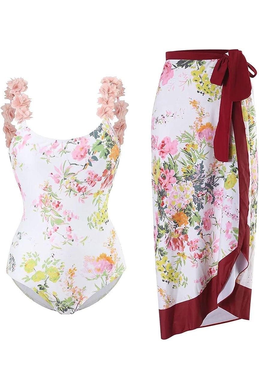 Fiora Flower Detail Swimsuit w/ Skirt Set