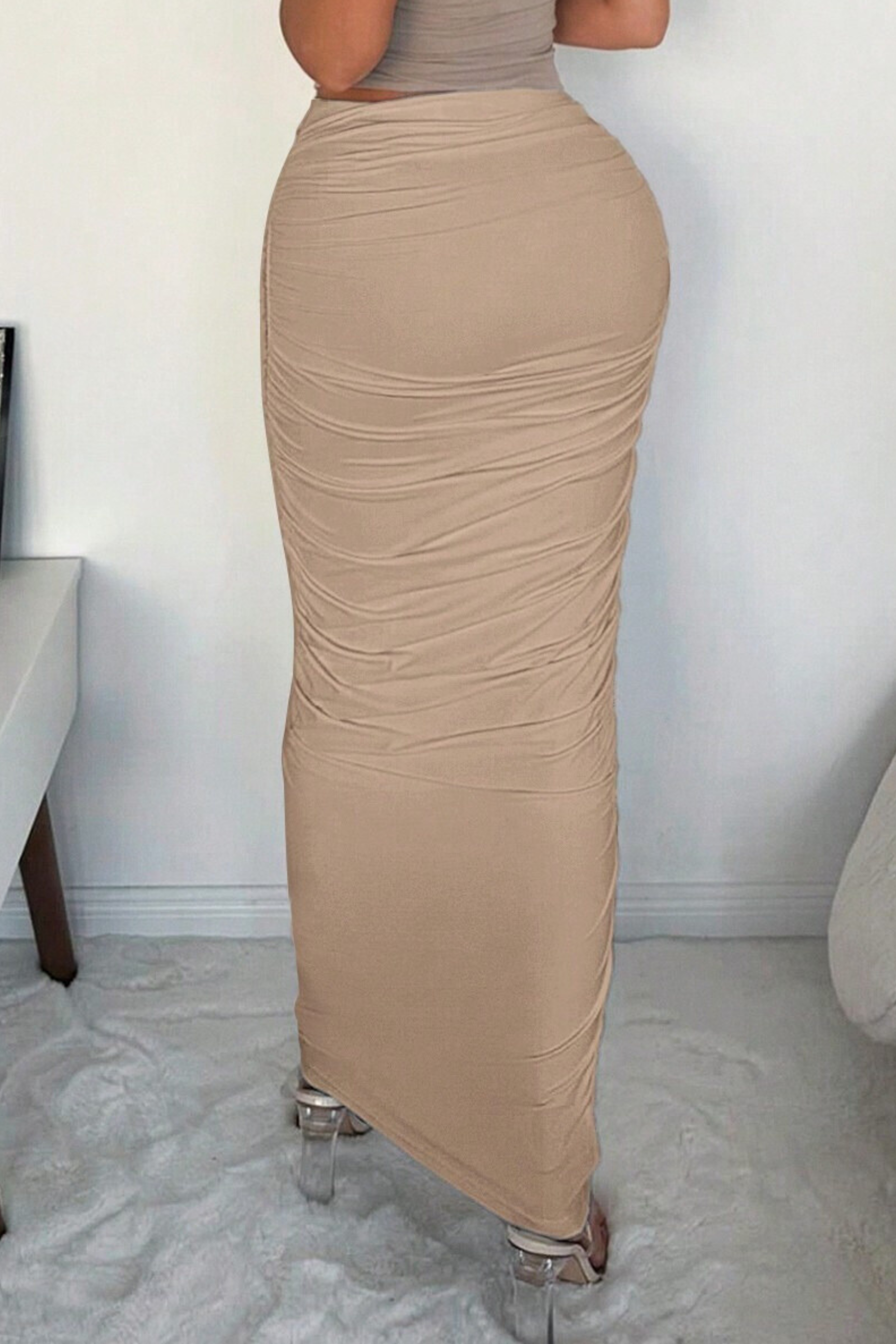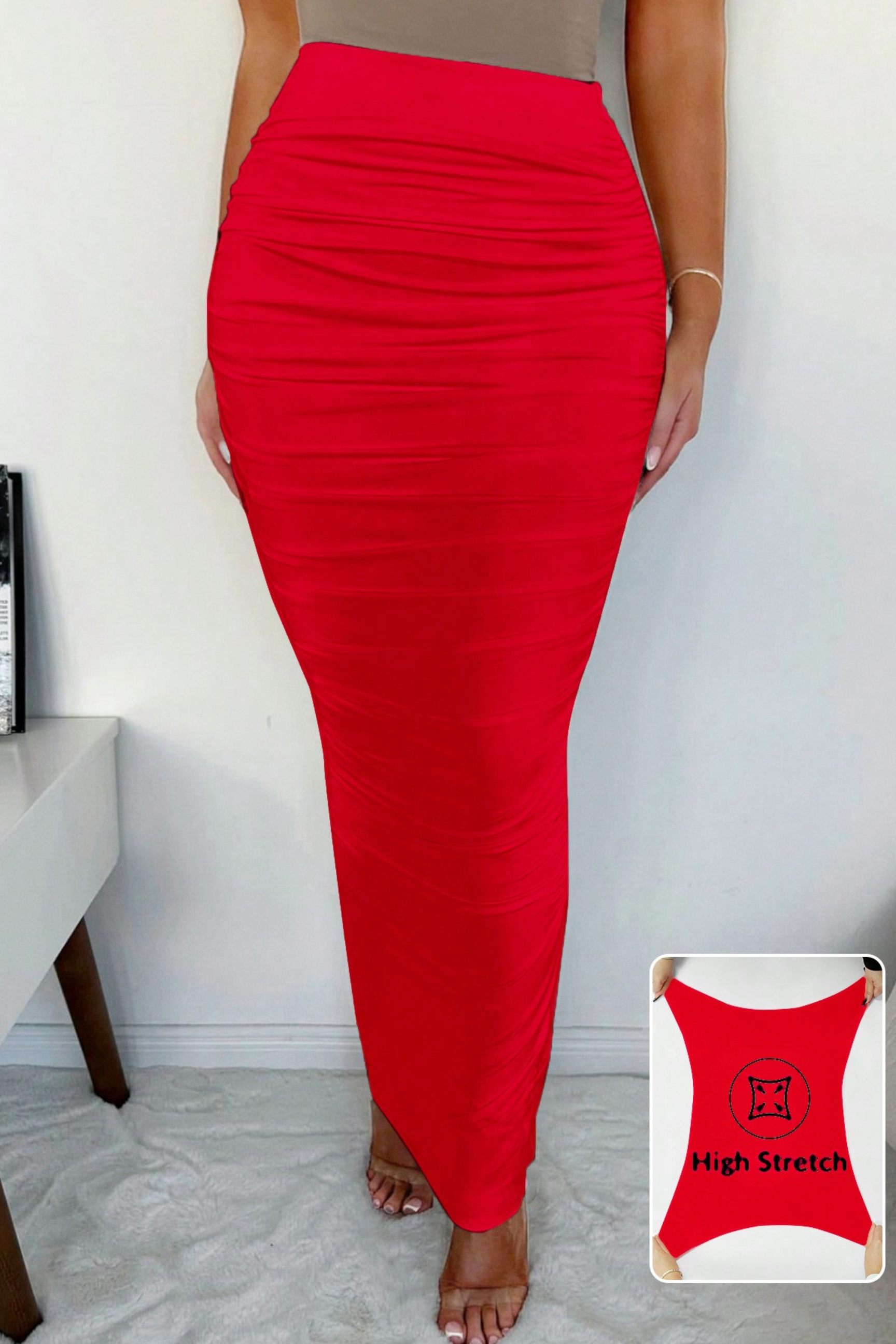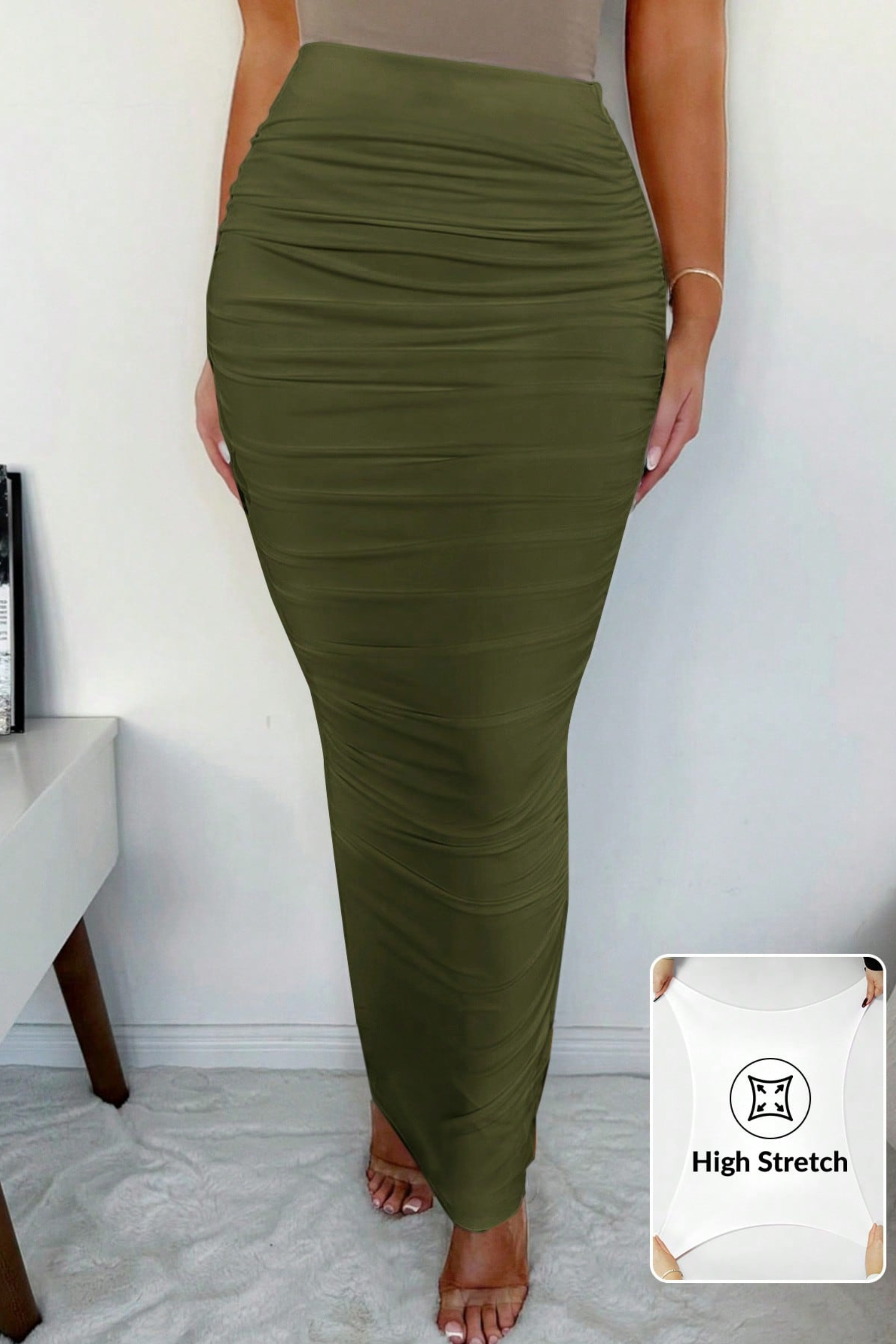 Elevate your attire with the Isabella Ruched High Waist Midi Skirt, a lavish combination of pleated high-waists, semi-sheer materials, and a form-fitting pencil shape. Indulge in opulence and exclusivity with this upscale garment, perfect for the realm of fine art, literature, and haute couture.