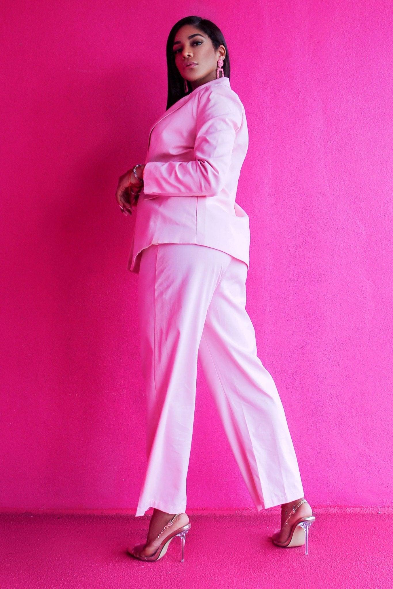 Indulge in the ultimate combination of style and sophistication with our Amy Blazer and Pants Set. This luxurious set features a non-stretch fabric and long sleeves, adding a touch of elegance and exclusivity to your wardrobe.