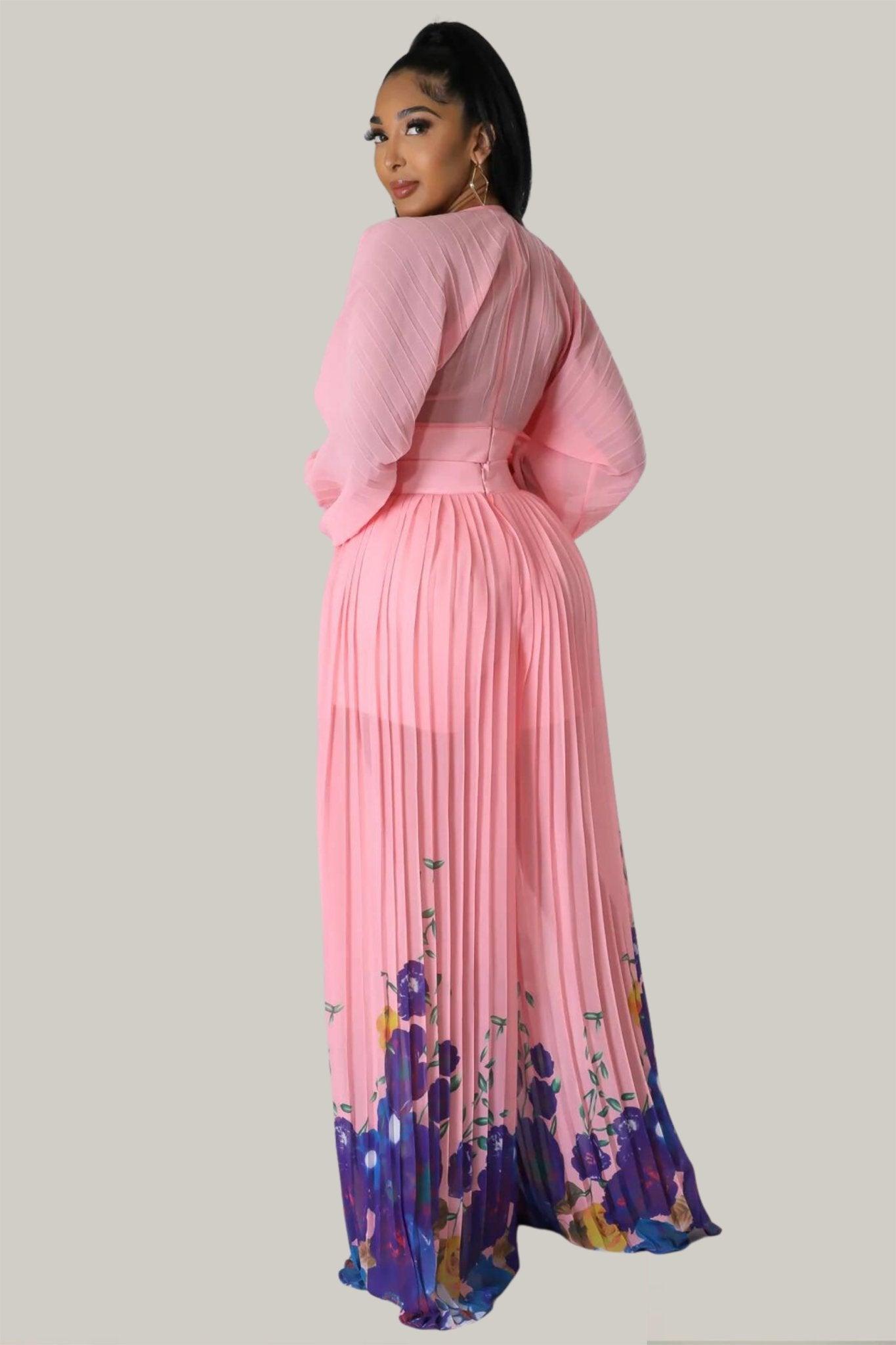 Paired with high-waisted pants, pleated to perfection, this set creates an elegant and elongated silhouette. The underlining adds an extra layer of luxury and ensures a seamless appearance. With the convenience of double zipper closures, getting dressed is a breeze.