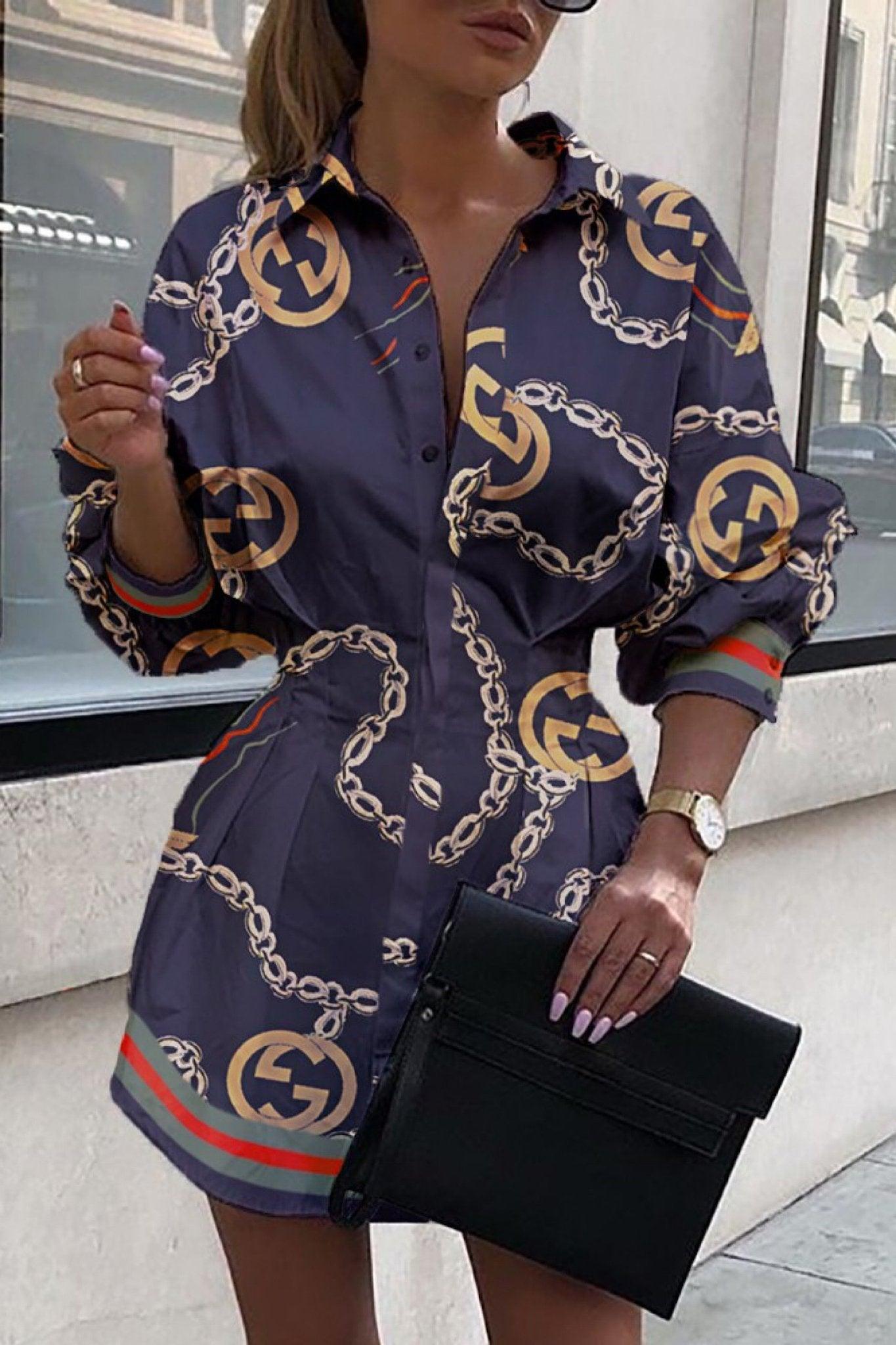 Chic and Stylish is the Glory Button Down Print Mini Shirt Dress! Dress down with sneakers or sandals for a more casual look and dress up with leggings, booties or heels for a more high end designer inspired look.