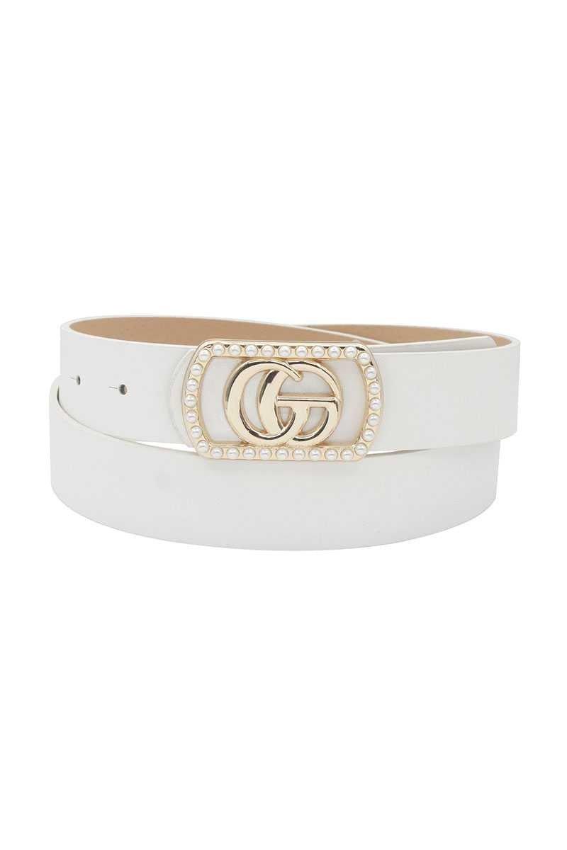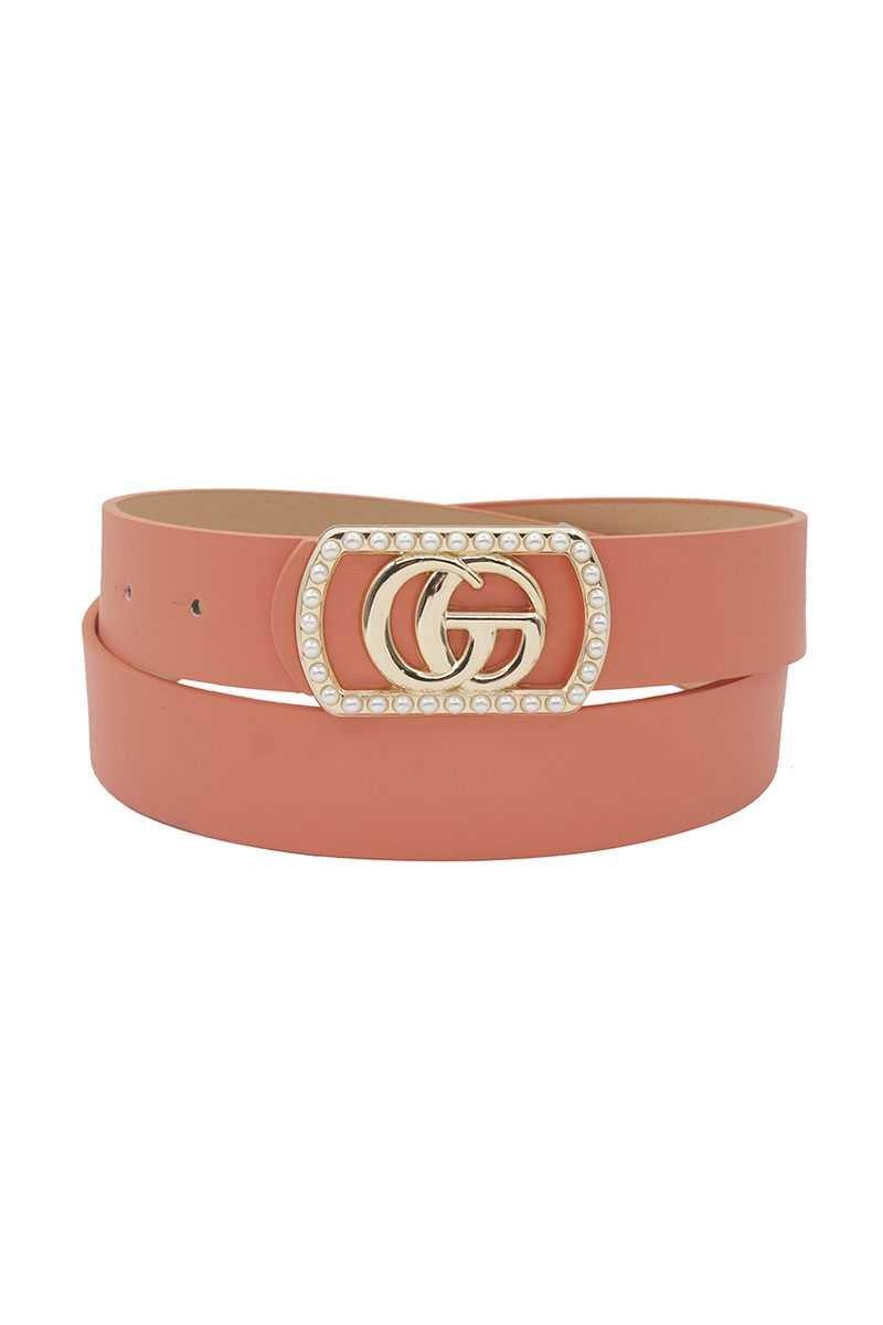 Feel CONFIDENT and SEXY in any pair of pants with our GO BUCKLE IN RECTANGLE FRAME W/PEARLS BELT. Available in multiple colors including black, tan and misty rose! The BELT measures 1 1/4"W and the length to first hole is 30" and to the last hole is 40".