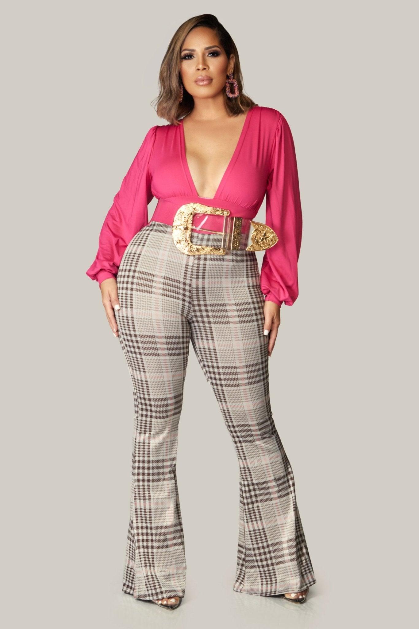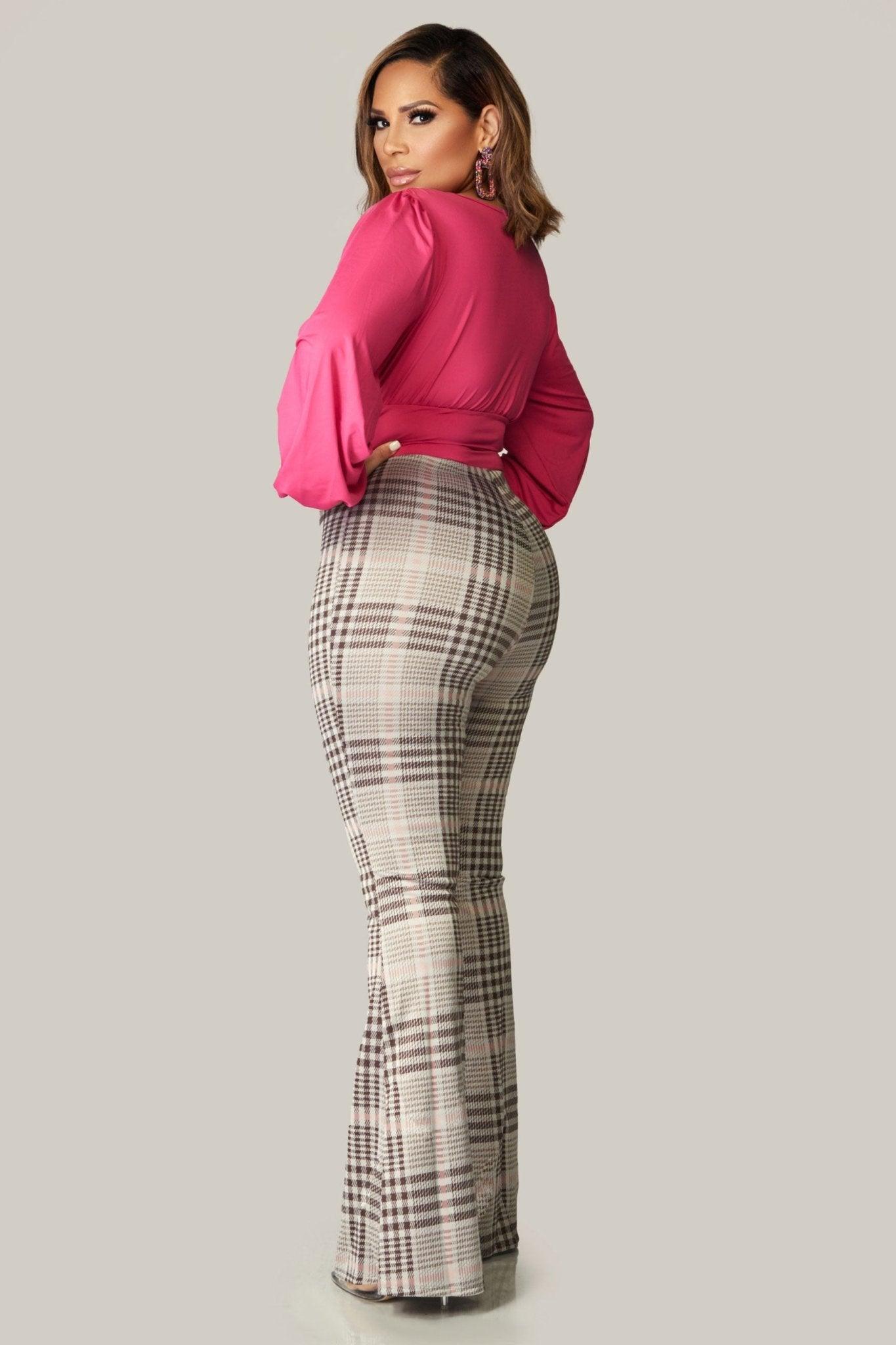 Elevate your style with our Plaid Printed Flared Long Pants featuring a captivating waistband detail. These pants showcase a trendy plaid print that adds a touch of sophistication to any outfit. The flared design creates a flattering silhouette, while the waistband detail adds a unique and stylish element. Perfect for both casual and dressy occasions, these pants are a versatile addition to your wardrobe. Step out in confidence and embrace the timeless appeal of plaid. Shop now and upgrade your fashion game!