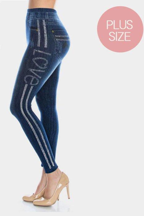 Side Crystal Pave Stripe "LOVE" Detail Leggings (PLUS ONLY)