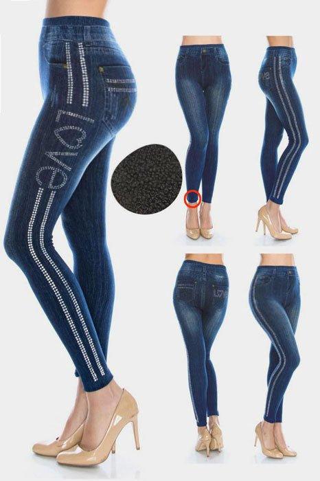 - Side Crystal Pave Stripe "LOVE" Detail Leggings
