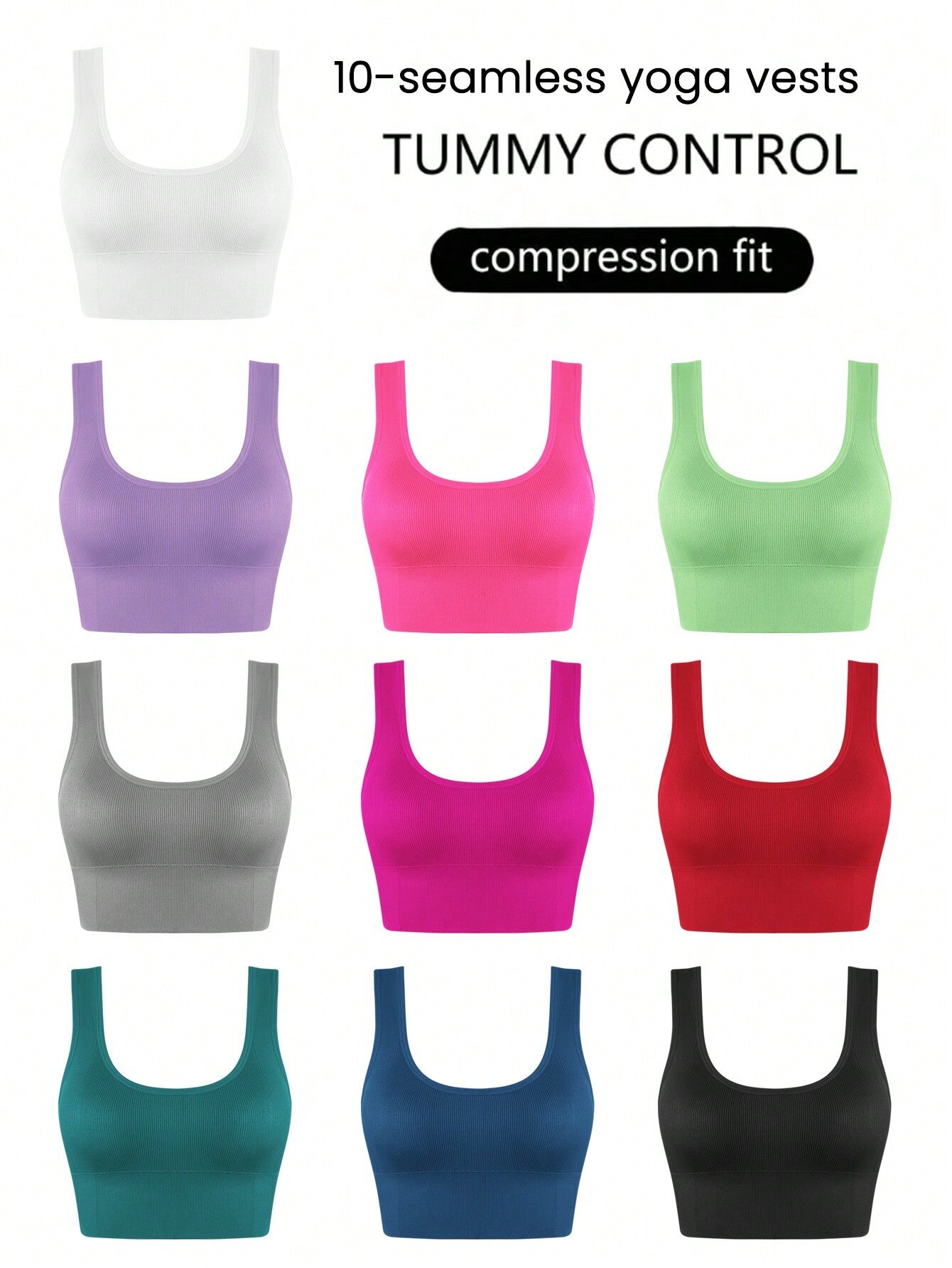 Yoga Basic Solid Ribbed Knit Sports Bra